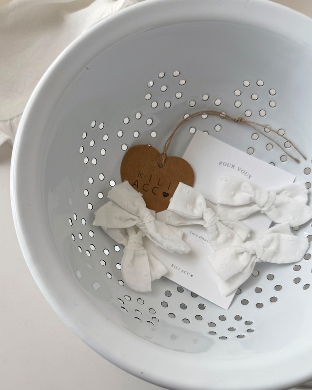 人気のドットミニヨンの生地でできたリボンクリップ/ ヘアゴムです。シンプルなデザインながらも、ドットのエンボスが可愛いデザインです♡ ヘアゴムは、結び目をリボンの中に隠している構造です。 古くなったらご自分で交換していただけます。 ※お使いの端末や設定等により実物と写真の色味や質感が異なって見えることがあります。 ******************************************** 〈セット内容〉 表示価格はリボン1つあたりのものです。 〈サイズ〉 リボン…約6cm ヘアクリップ …約3.5cm ヘアゴム…直径約4.5cm(色はブラウン) 〈素材〉 コットン100%