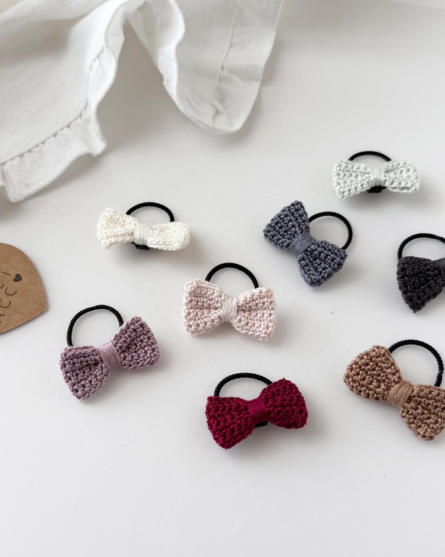 秋冬のヘアスタイルに可愛らしさをプラスするかぎ編みリボンヘアゴム。 ヘアゴムサイズは2種類からお選びいただけます。 ******************************************* 〈内容〉 表示価格はリボン1つあたりです。 〈サイズ〉 リボン横幅…約4cm ゴムmini size…直径約2.5cm ゴムregular size…直径約4cm 〈素材〉 糸…コットン