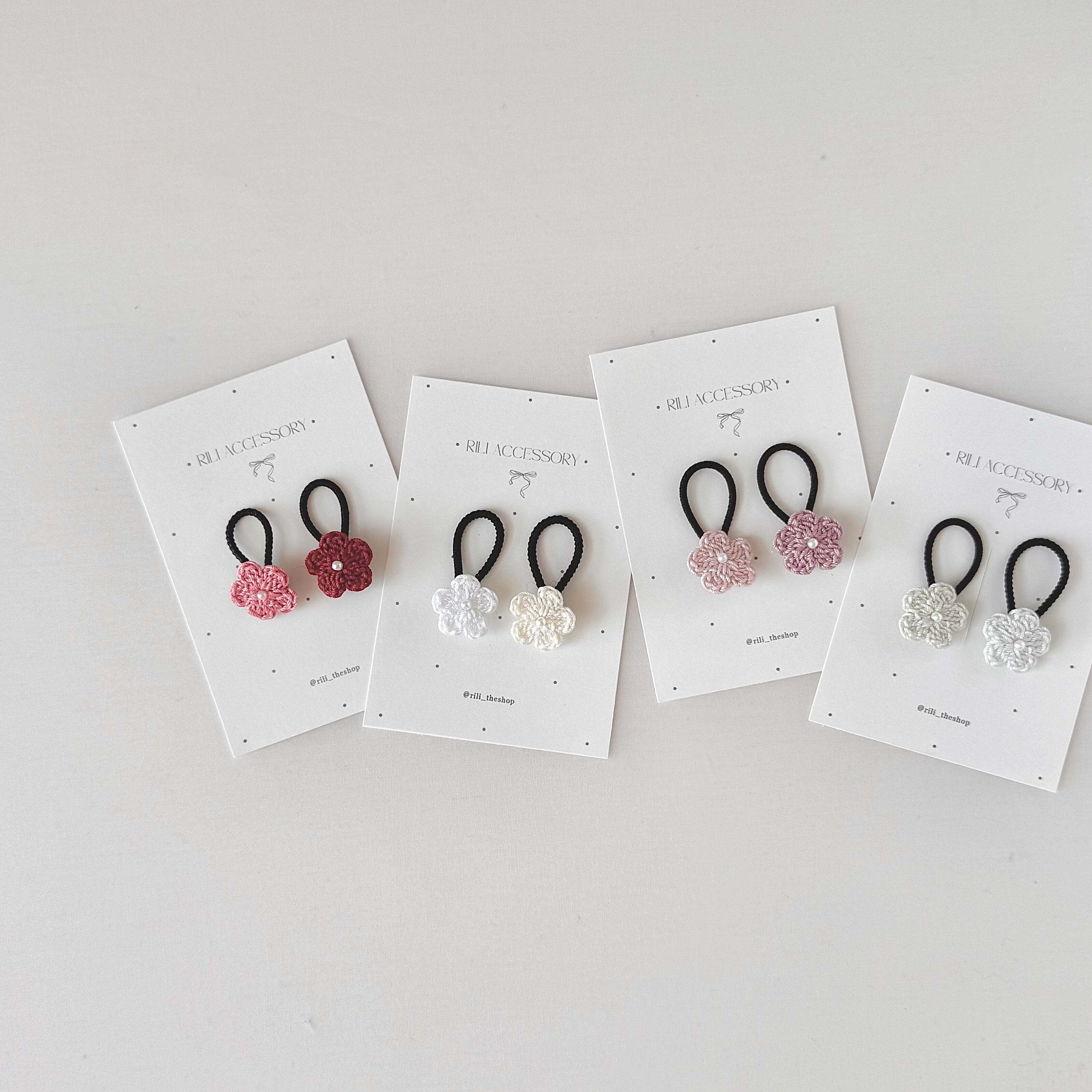 レース糸でできた、とっても小さなお花のヘアゴムです。
