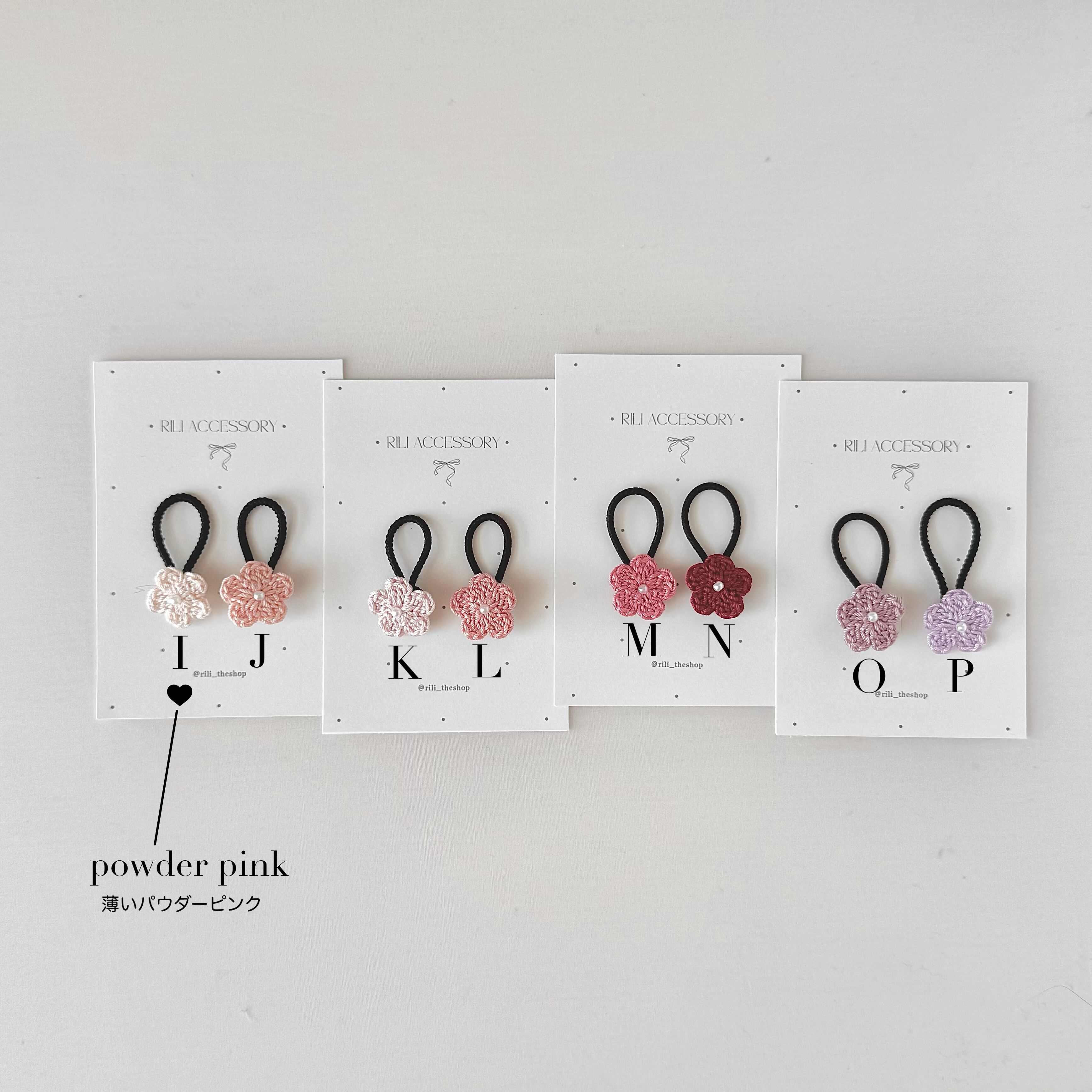 お花の真ん中は、小さなパールビーズです。さりげなく可愛くお子様の髪型を飾ります。カラーは豊富な24色を取り揃えております。