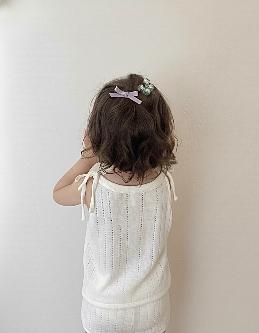 まだ髪の毛が少ないお子様におすすめです。リボンのカラーが表から見えるデザインです。リボンの色はホワイトです。
