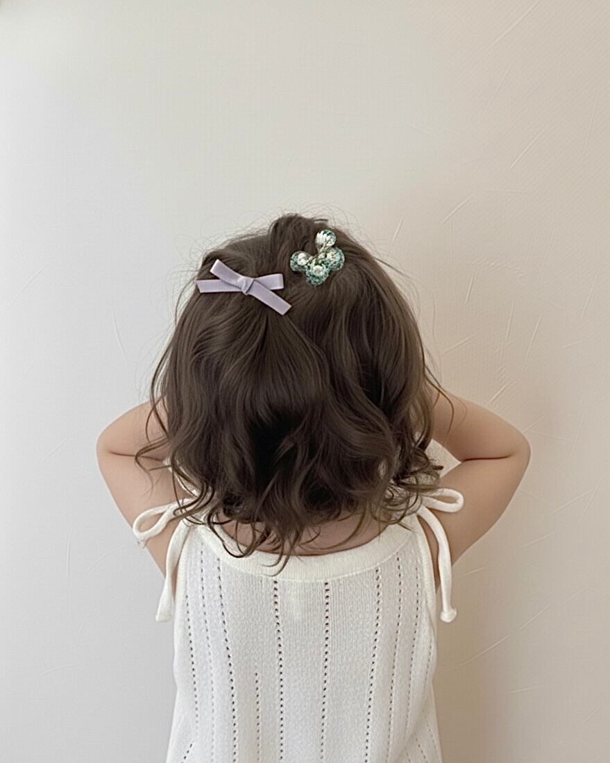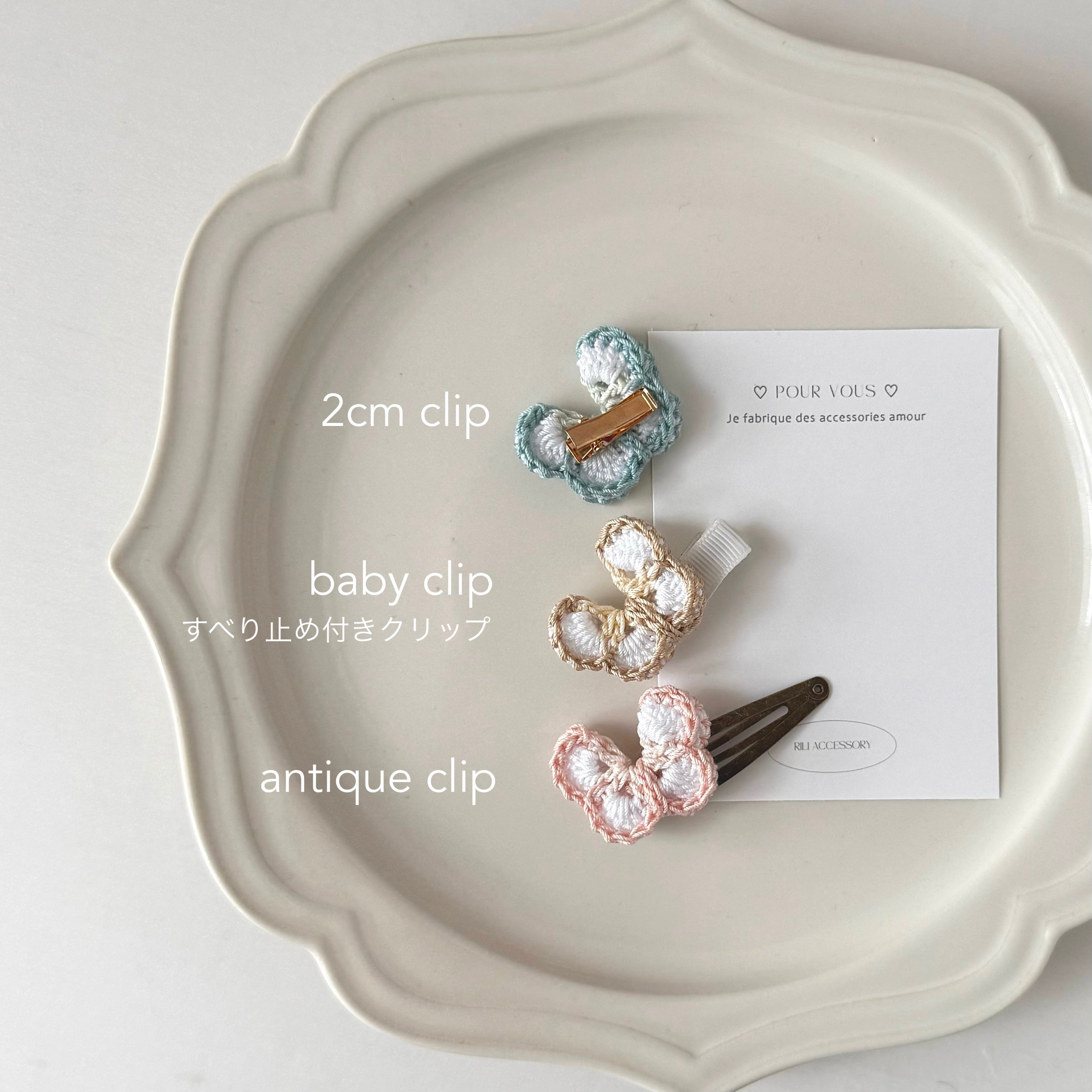 とてもとても小さなクリップです。結んだ髪の毛にちょこっと飾るならこちらがおすすめです。