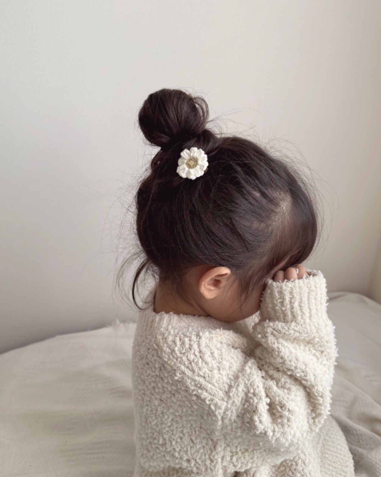 大きめサイズで、ヘアスタイルのワンポイントに。真ん中のイエローは、大人っぽいくすみカラーです。