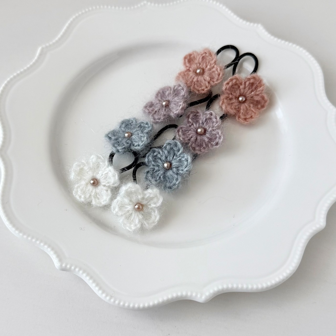 Mohair flower hair tie & clip