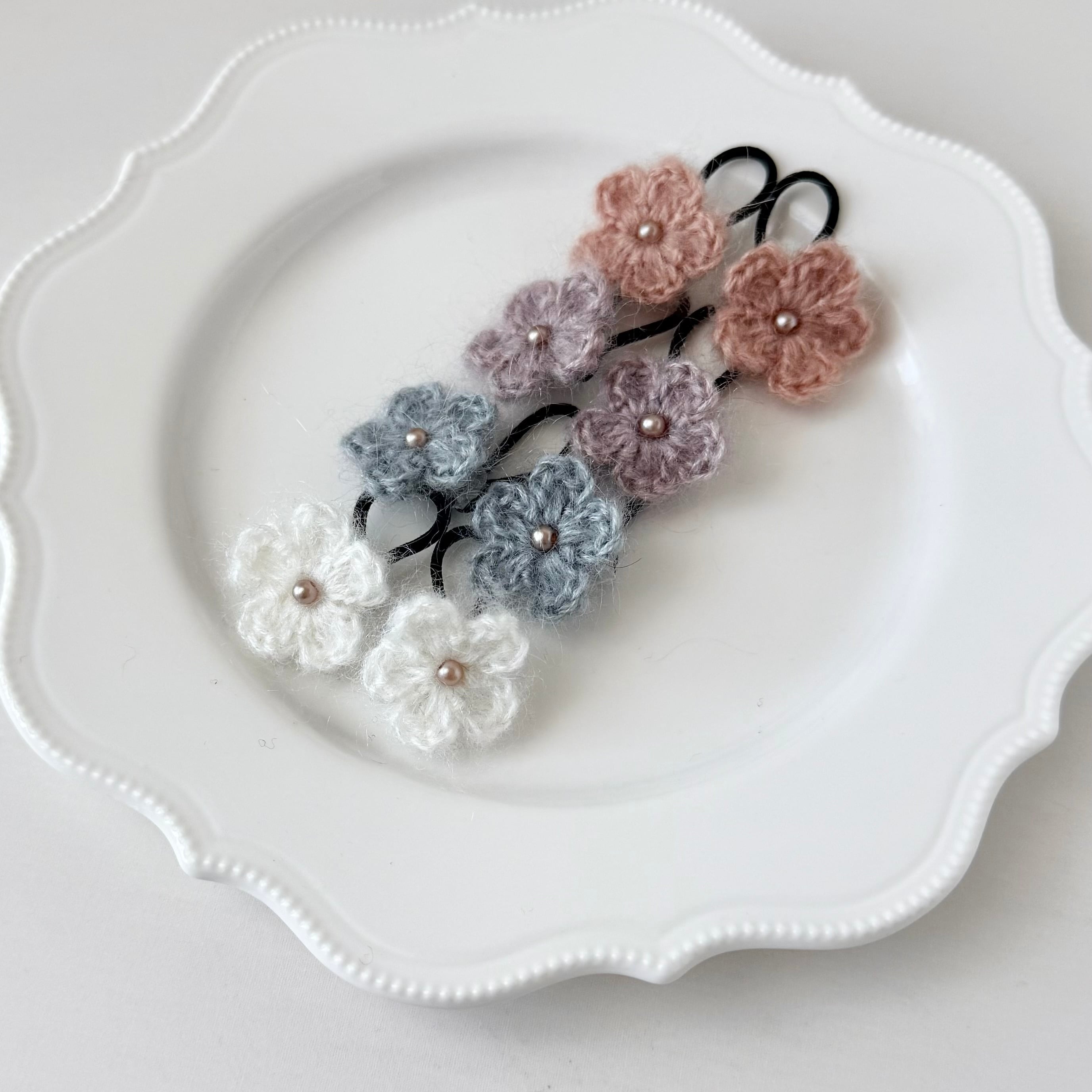 モヘア毛糸のシンプルなヘアゴム/ヘアクリップ です。