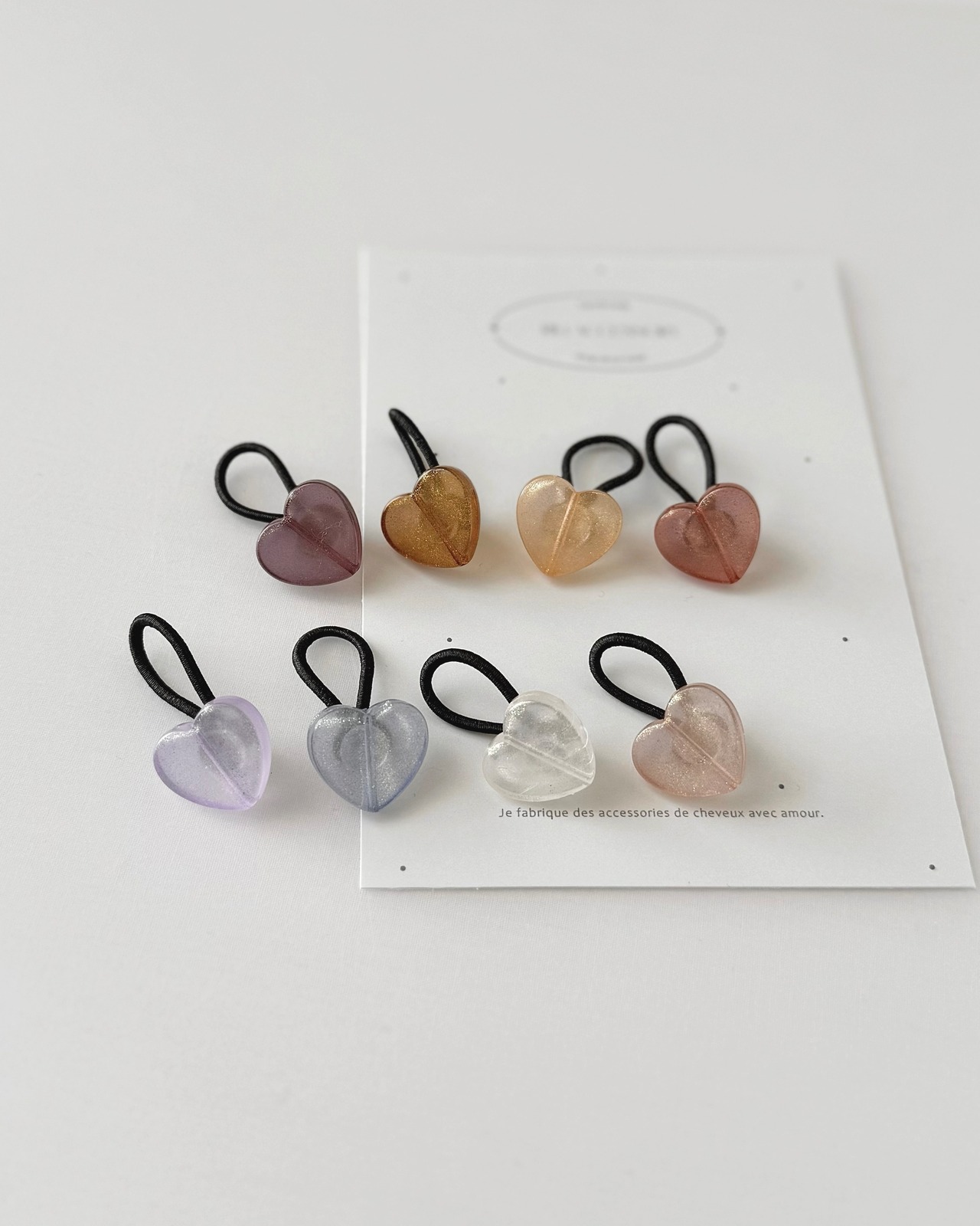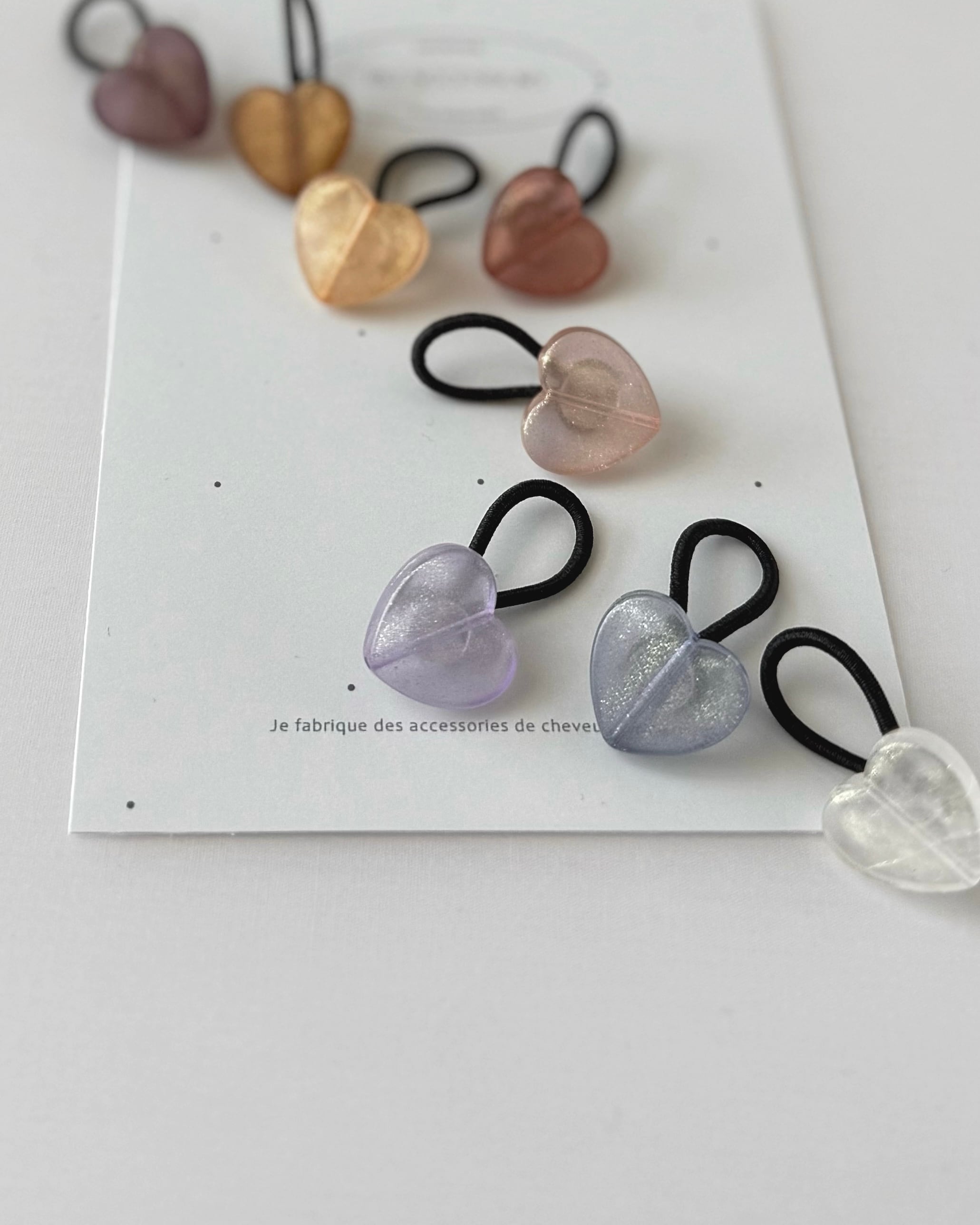 イエロー系ラメ入りハートのヘアゴムです。キャンディのようなハートが、お子様のヘアスタイルをキュートに演出します。