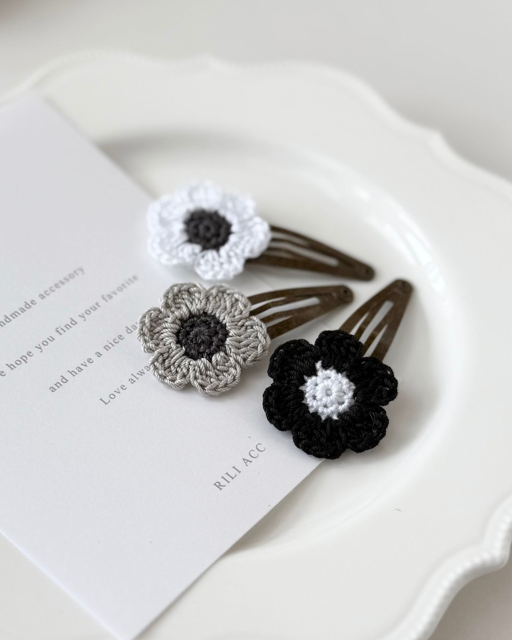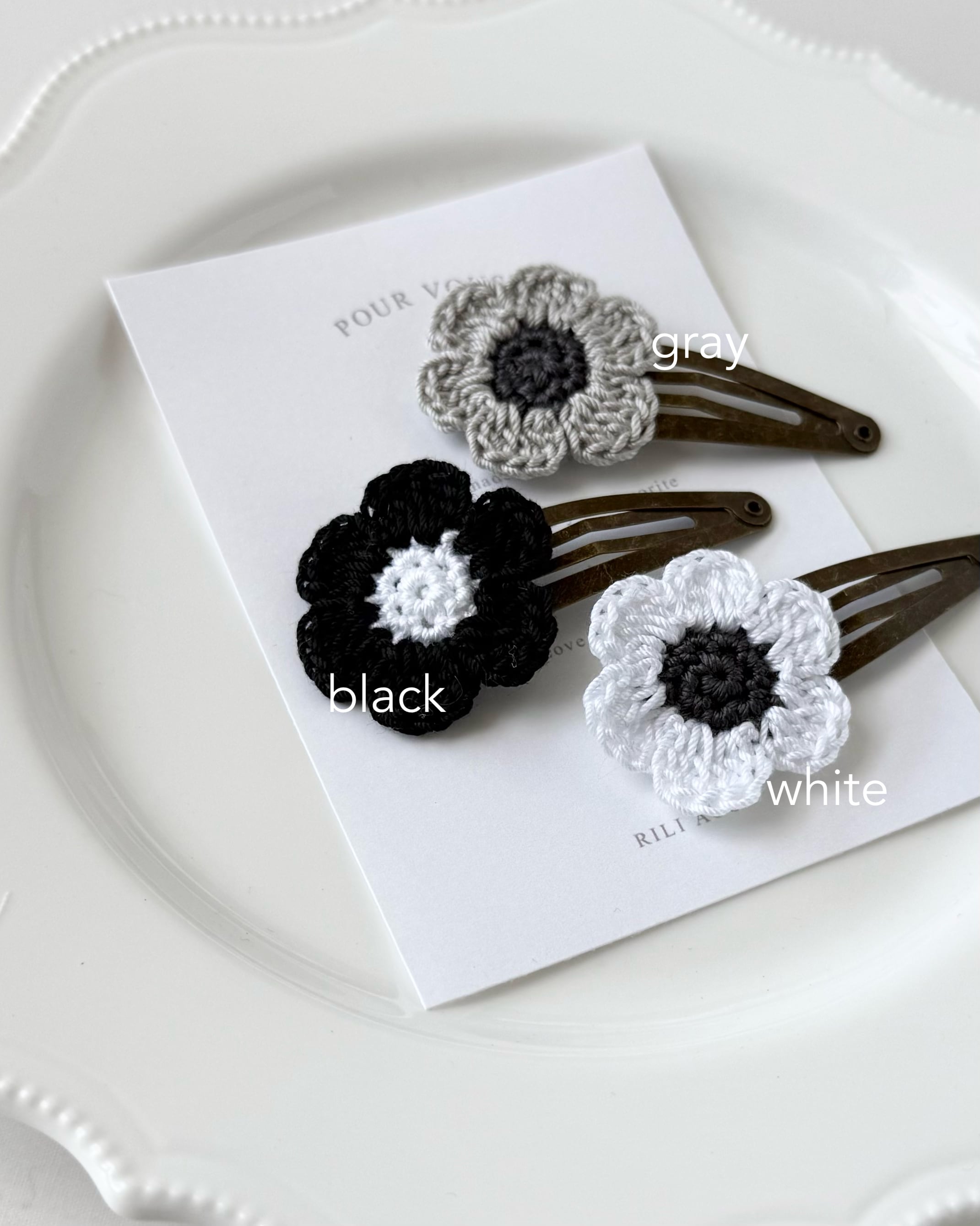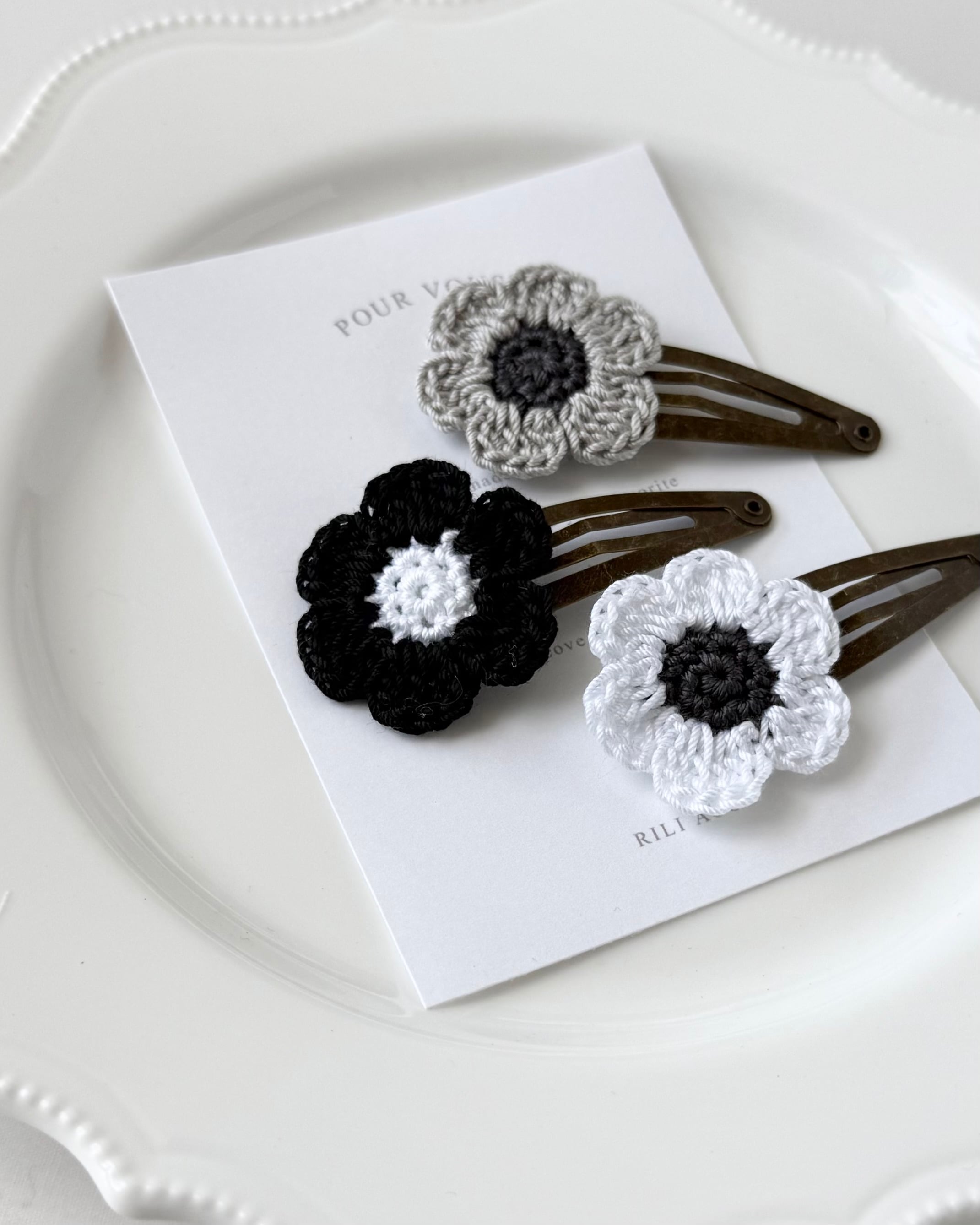 かぎ編みのアネモネヘアクリップ です。