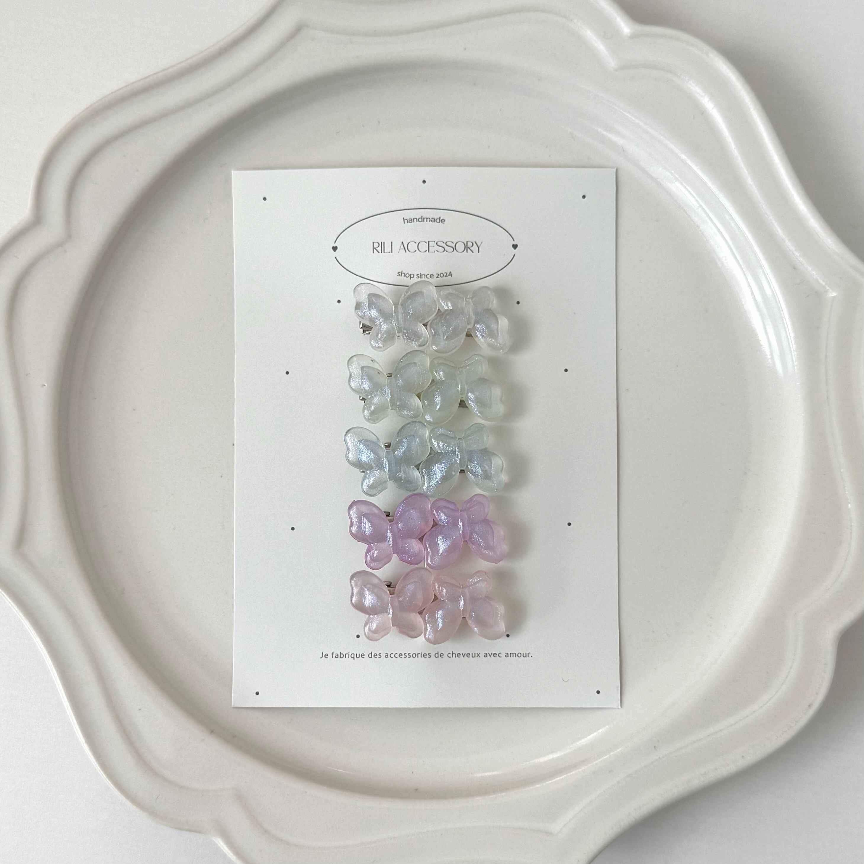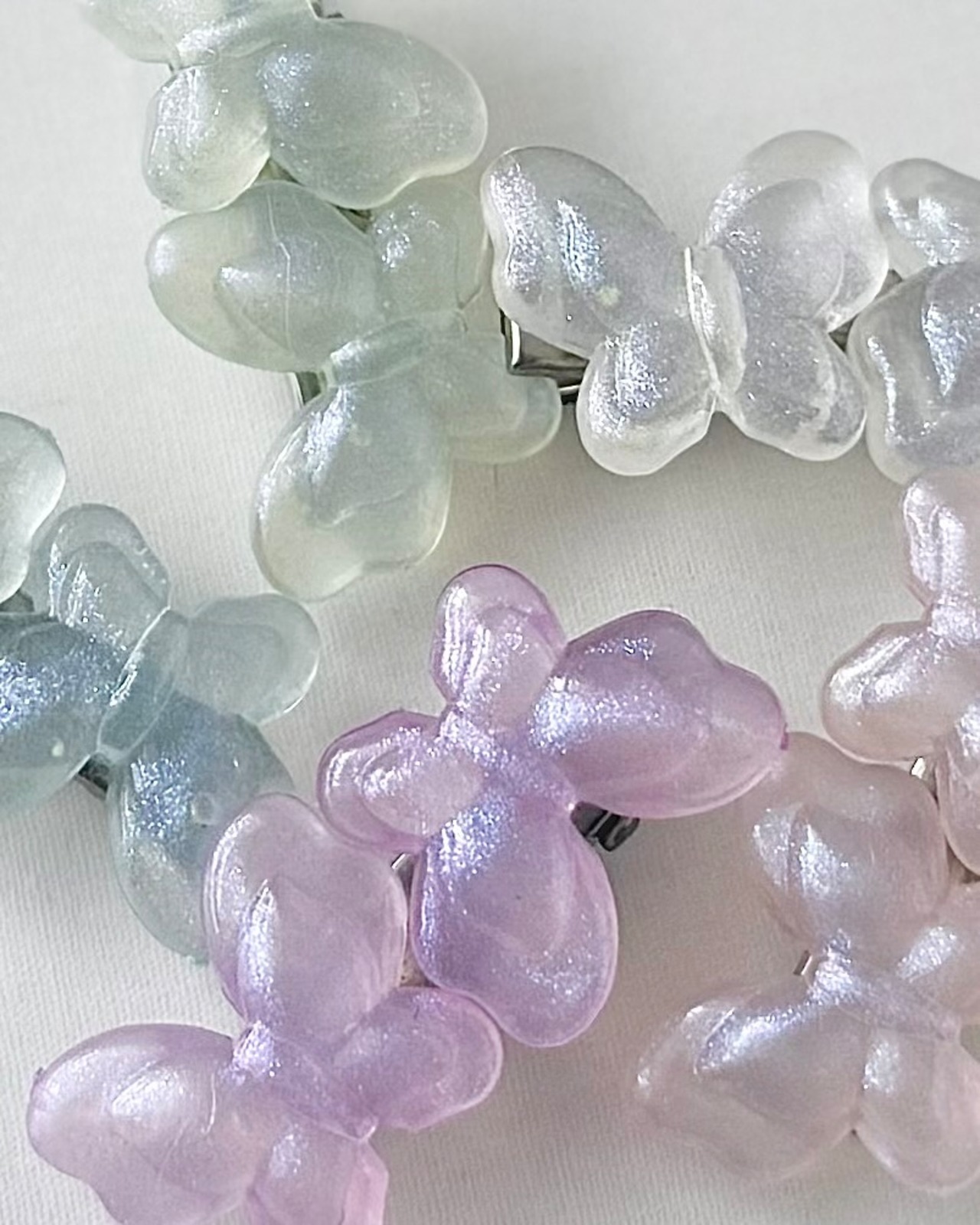 カラフルで透明感のあるちょうちょのヘアクリップ です。