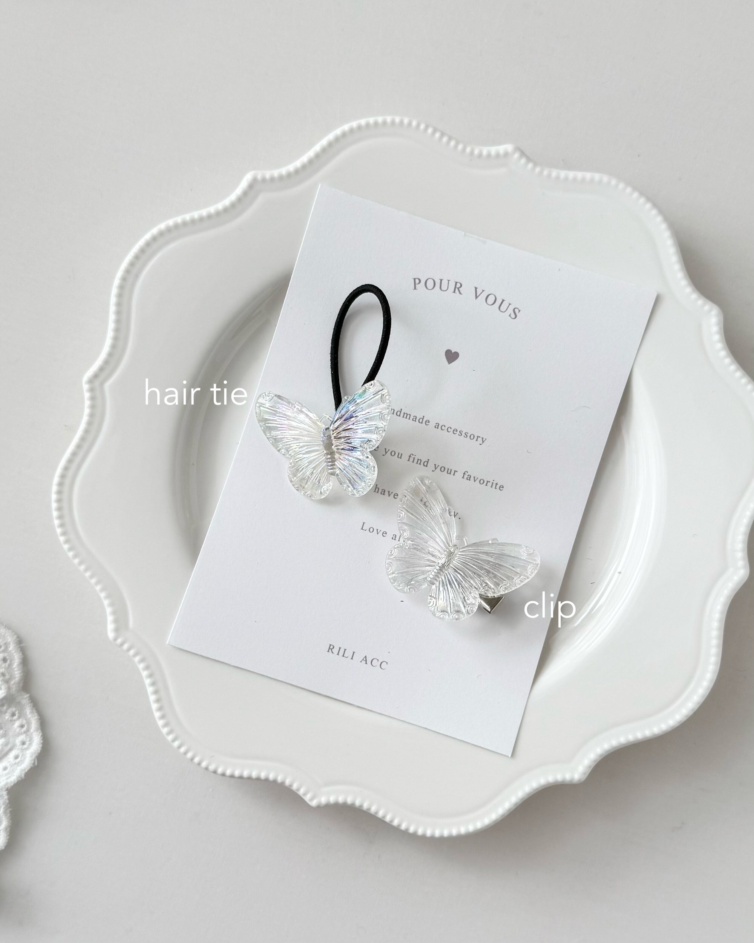 Clear color buttefly クリップ/ゴム