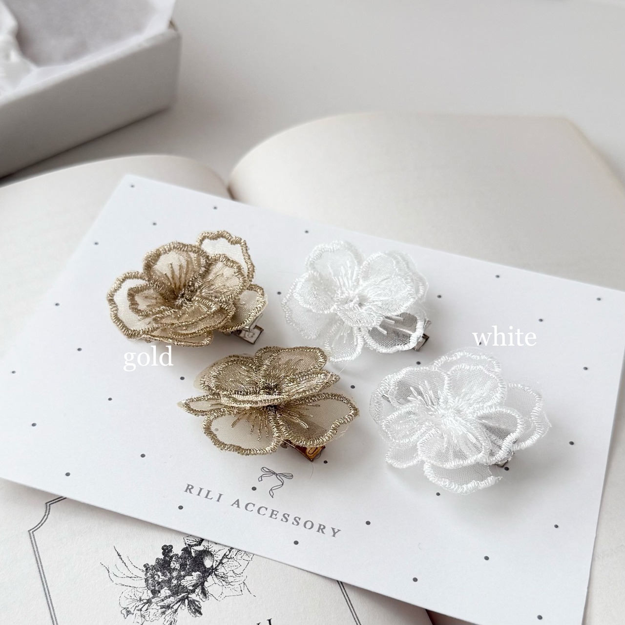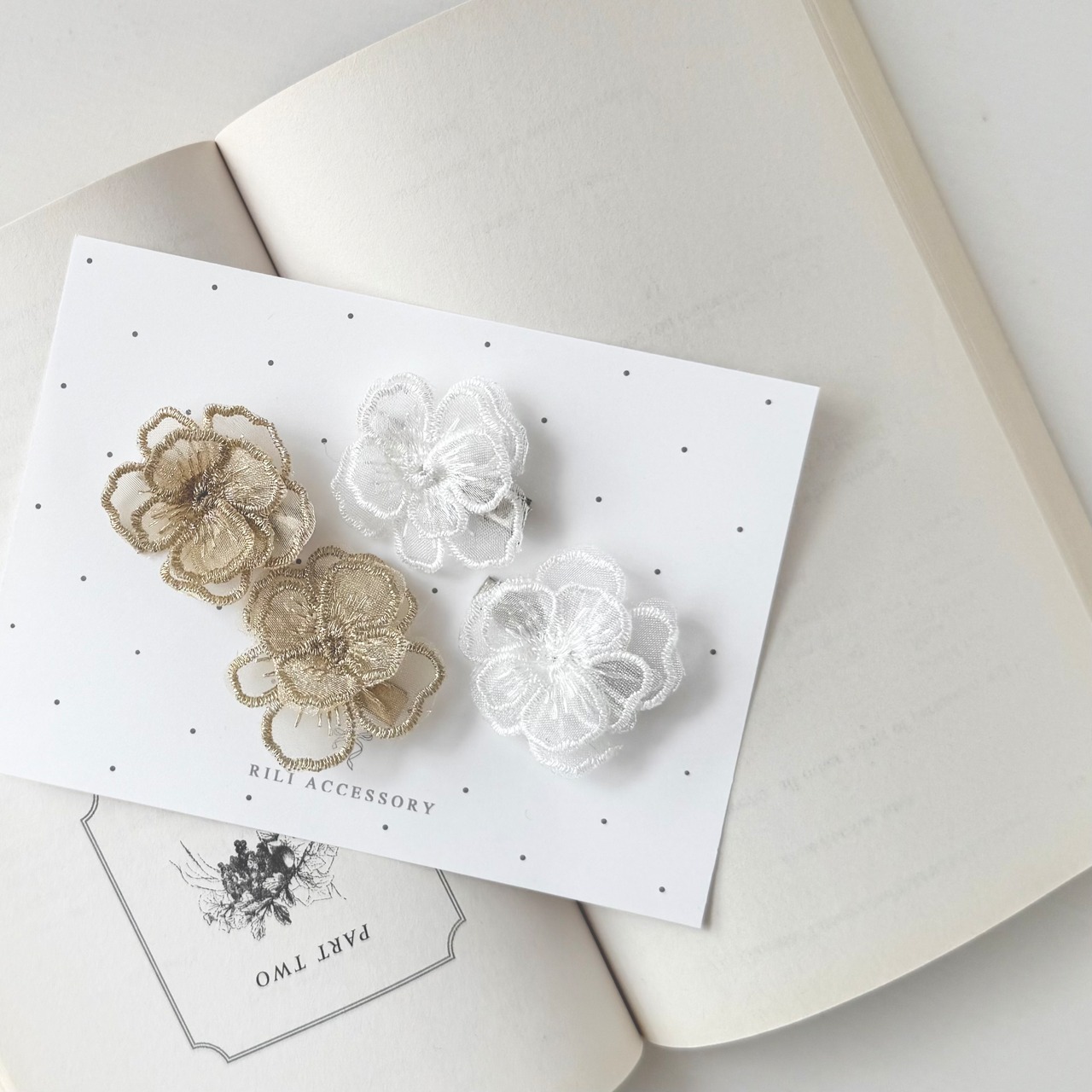 優雅で大人かわいいデザインです。それぞれ少しづつ違った形のお花をお楽しみください。