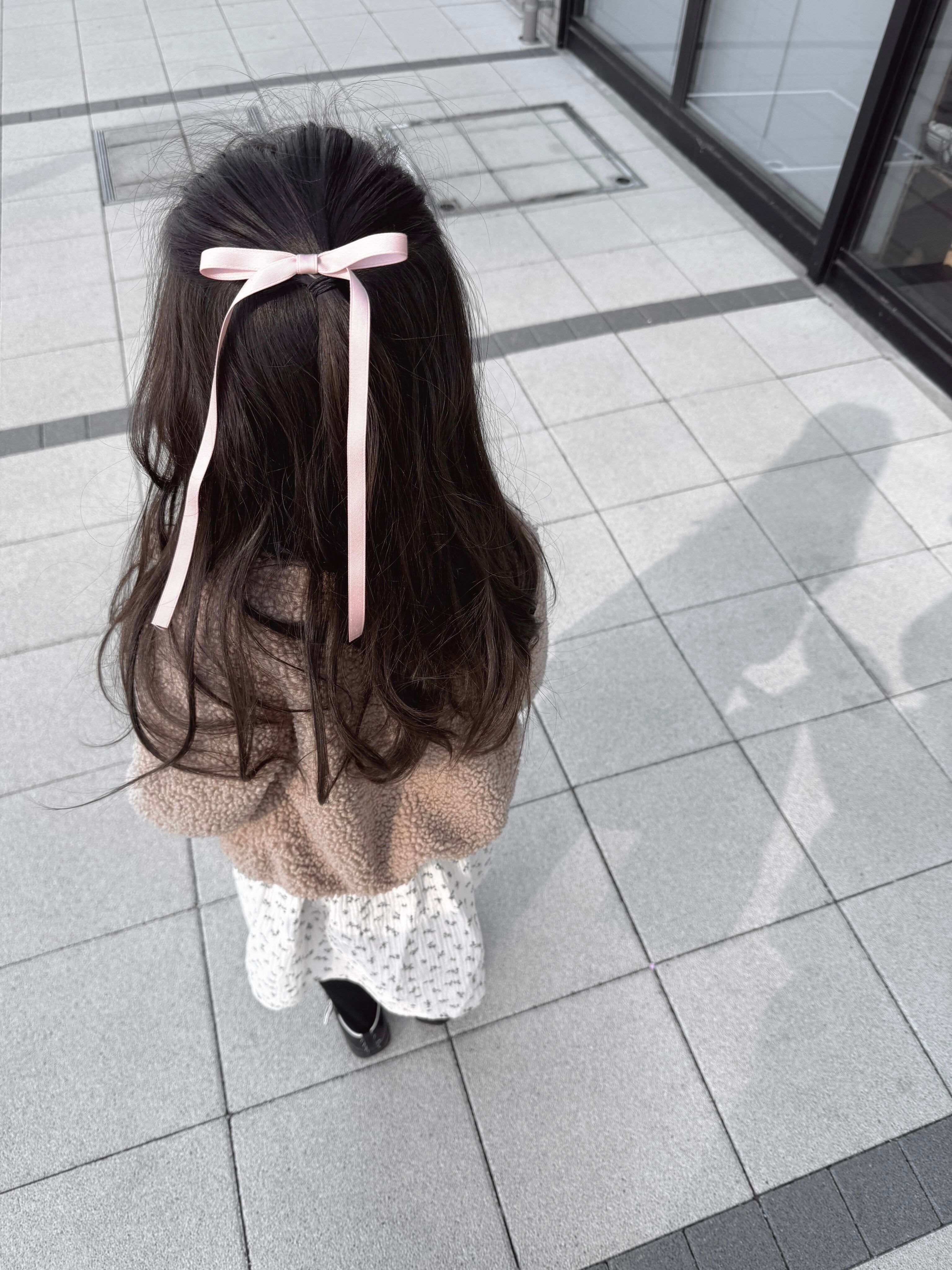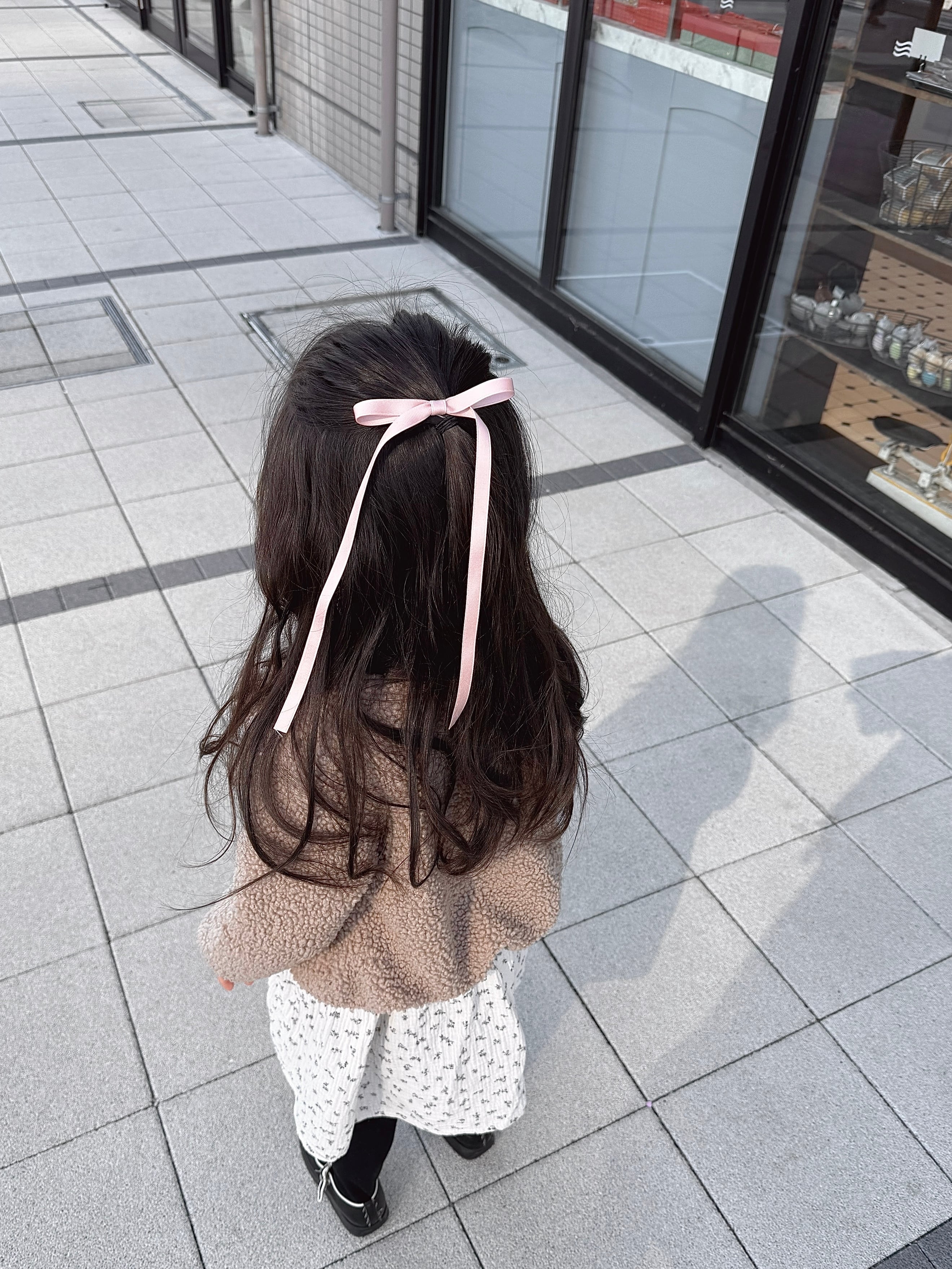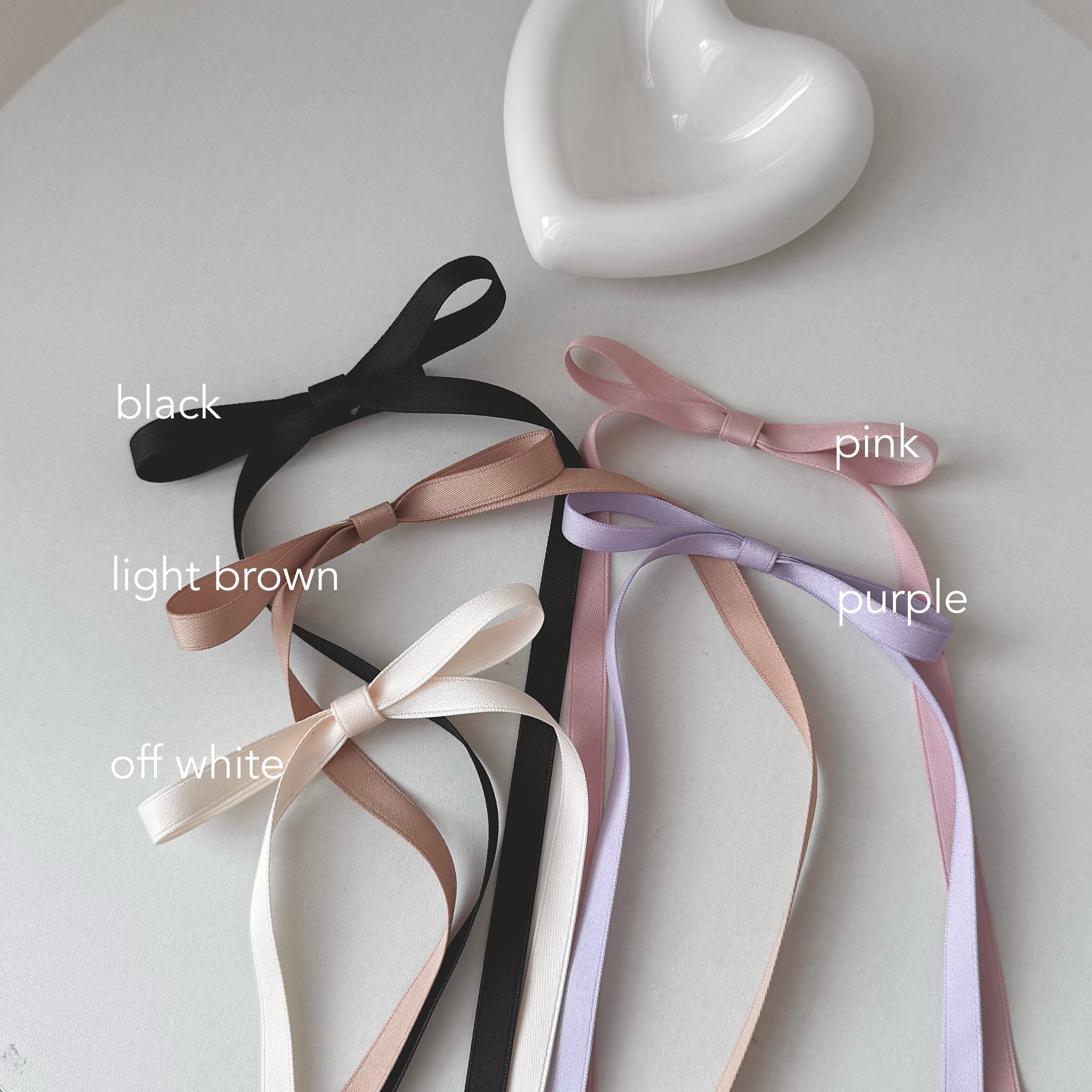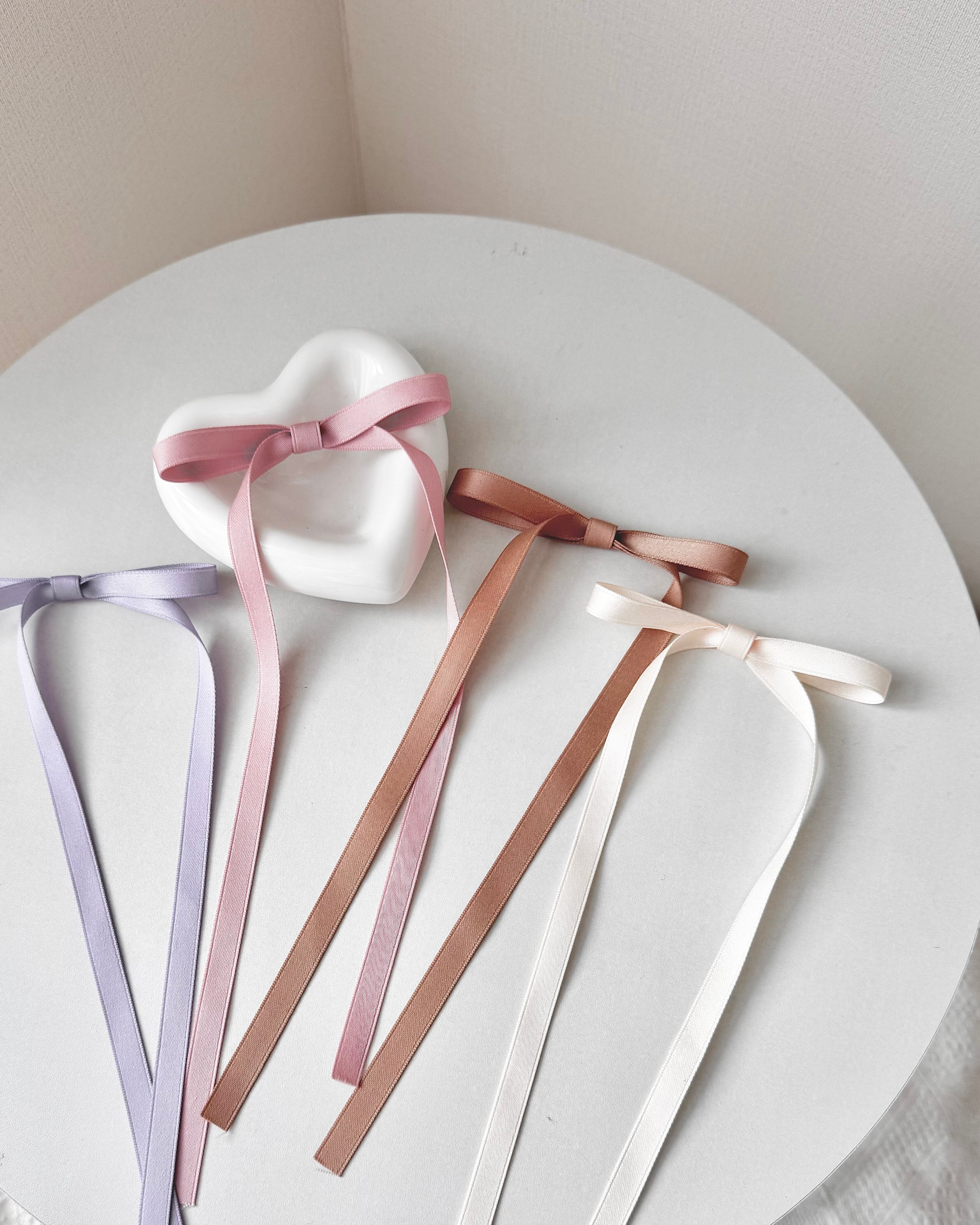 ツヤをおさえたマットサテンリボンのヘアクリップ です。長いリボンが髪型を優雅に演出します。