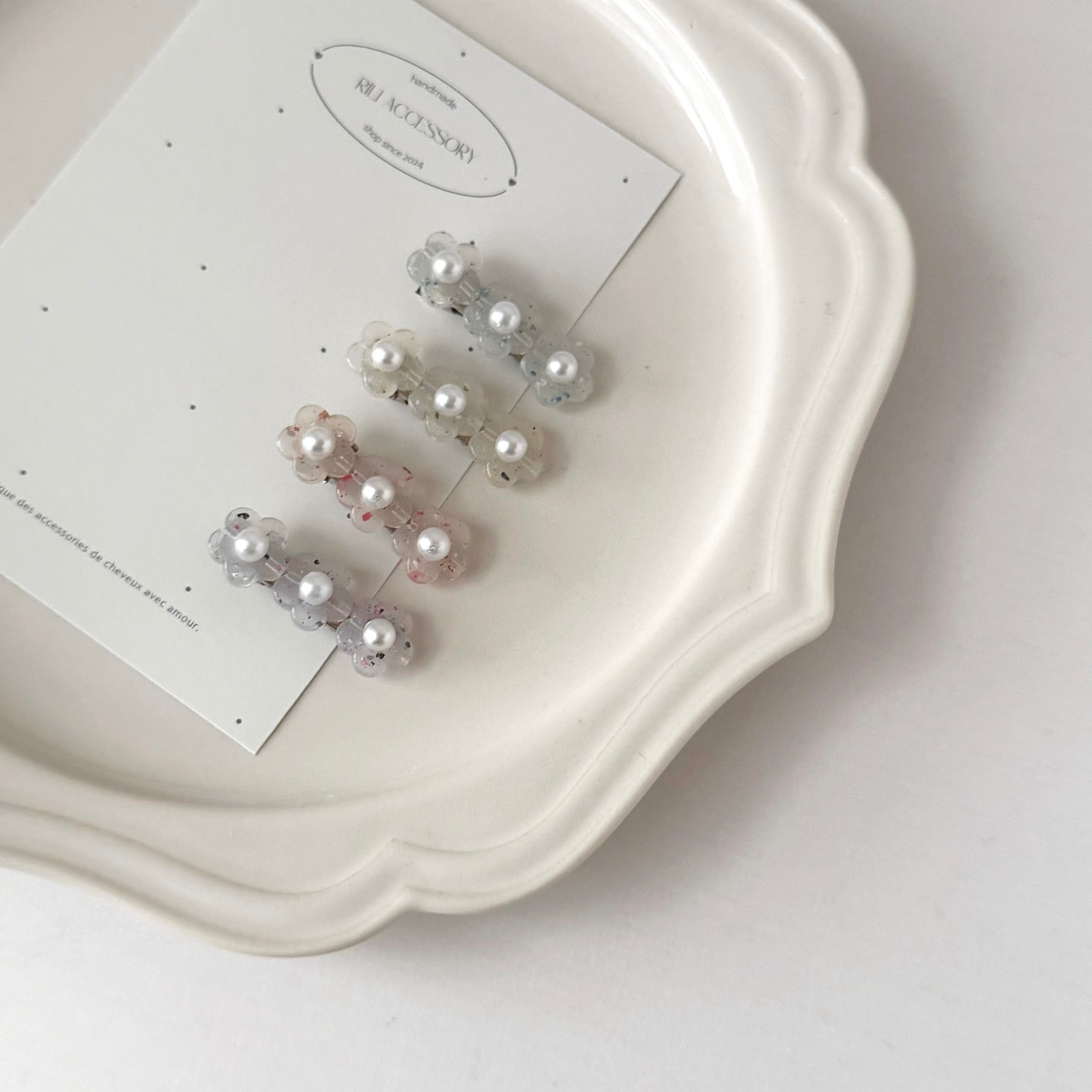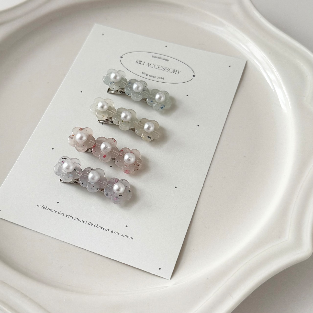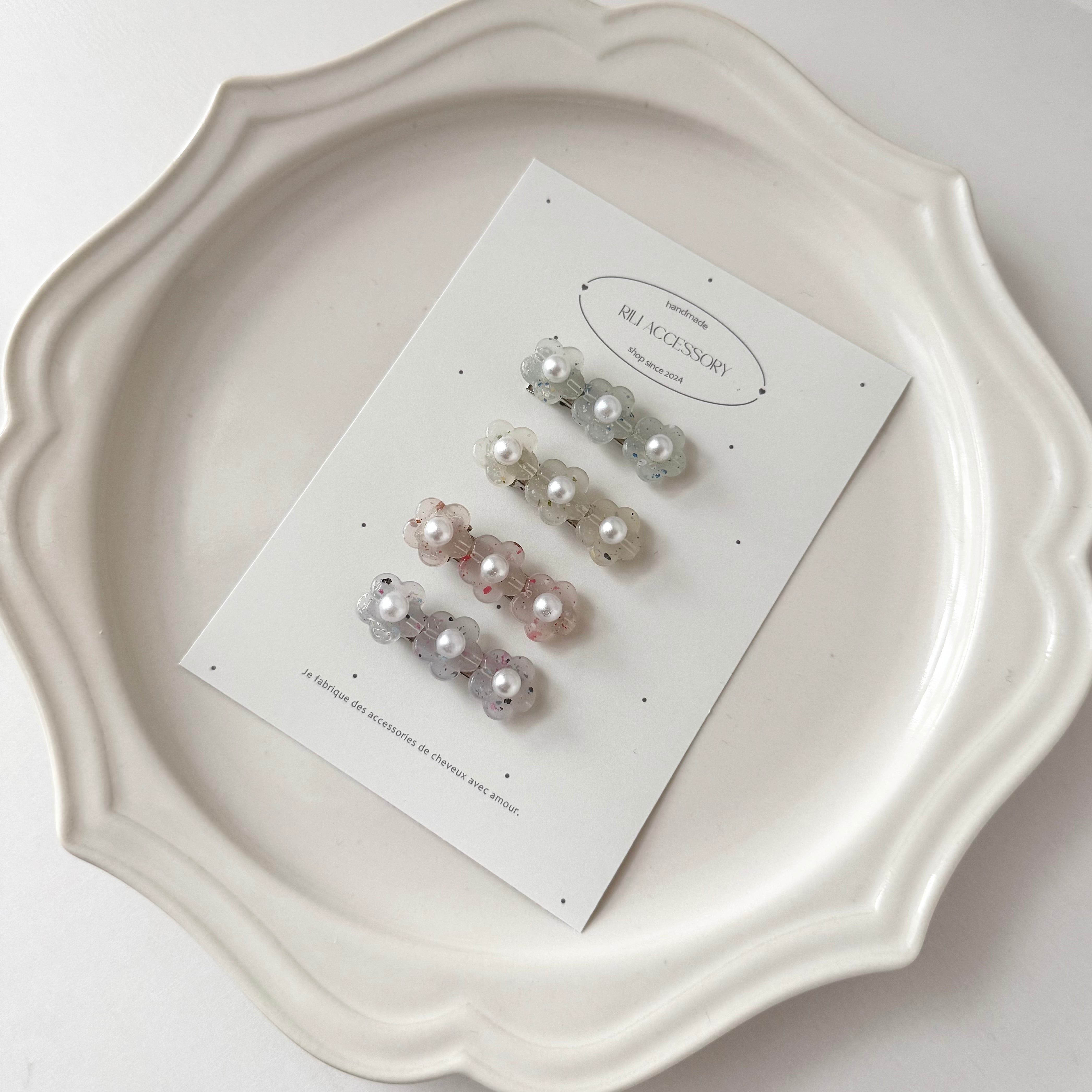ランダムにカラーが散りばめられたお花のヘアクリップです。ニュアンスカラーで、ヘアスタイルに程よい色味をプラスします。