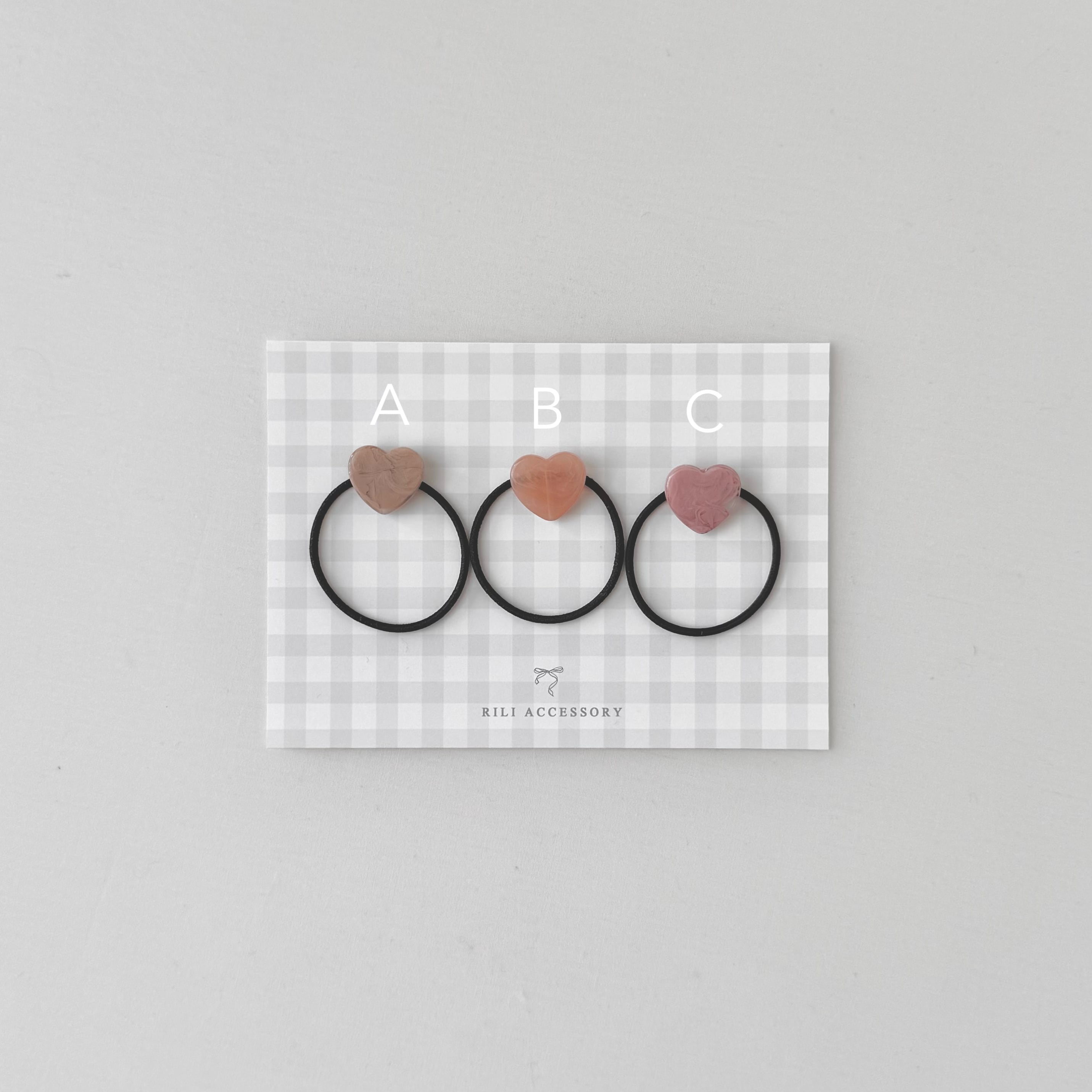 マーブルハートのヘアゴムです。キャンディのようなハートが、お子様のヘアスタイルをキュートに演出します。