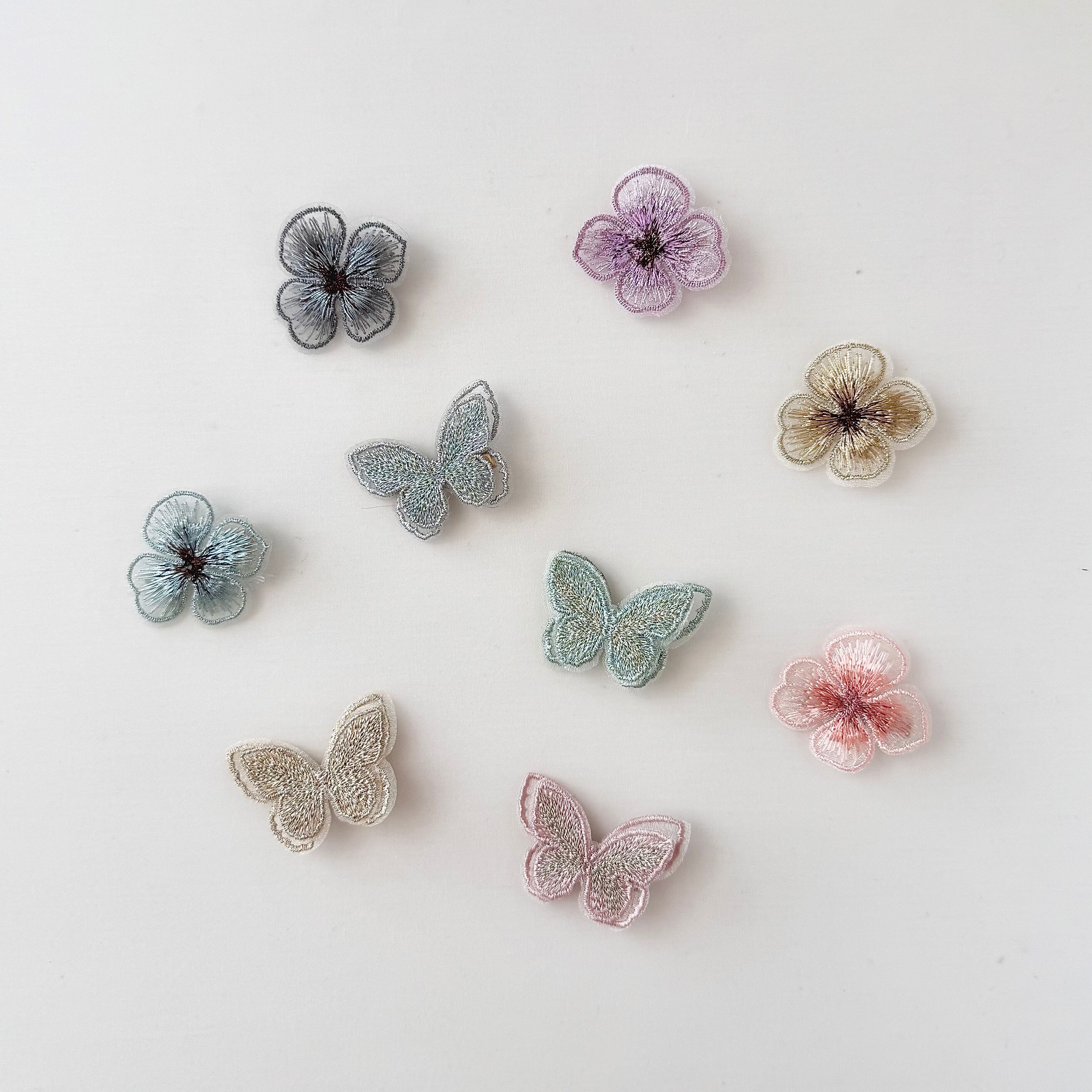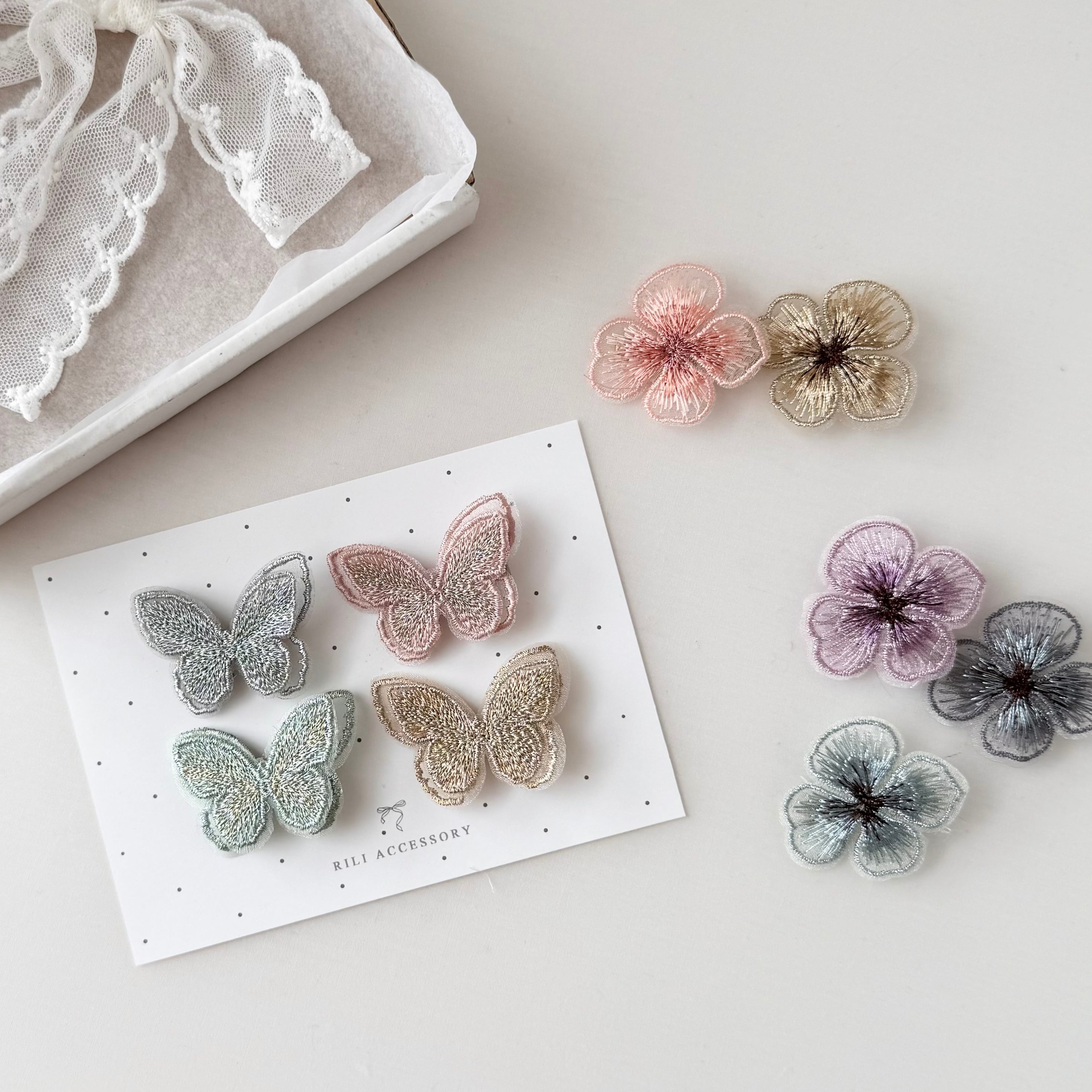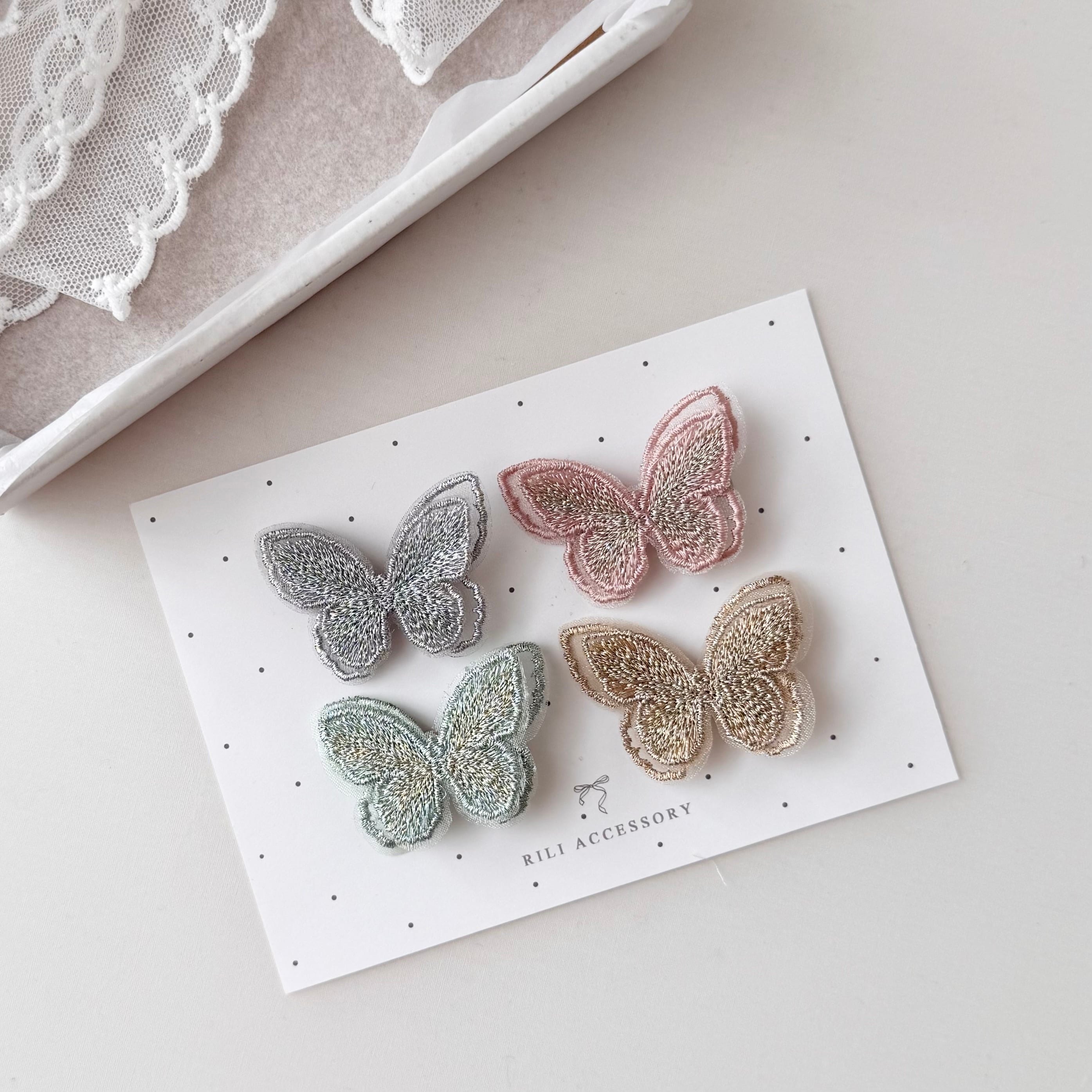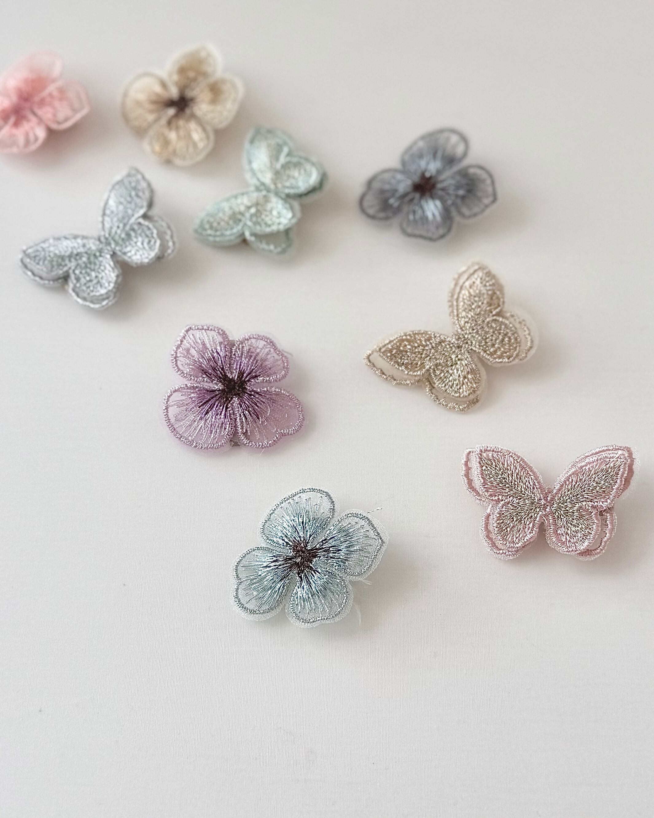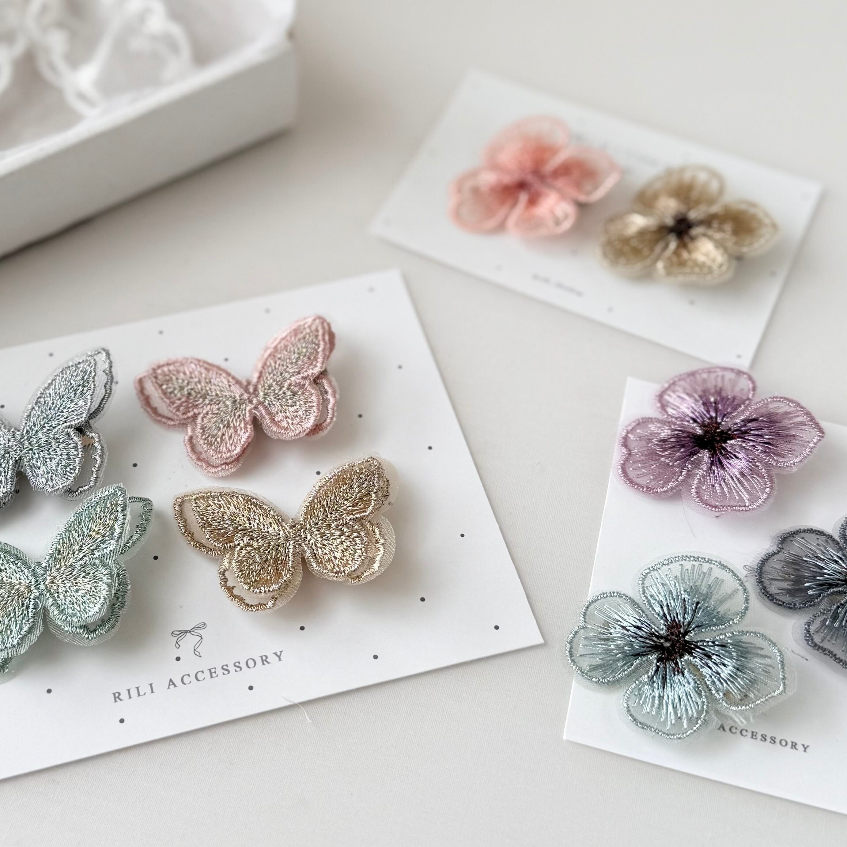 やや光沢があり高級感のある素材で作られたちょうちょのヘアクリップ です。様々なヘアスタイルを華やかに演出します。