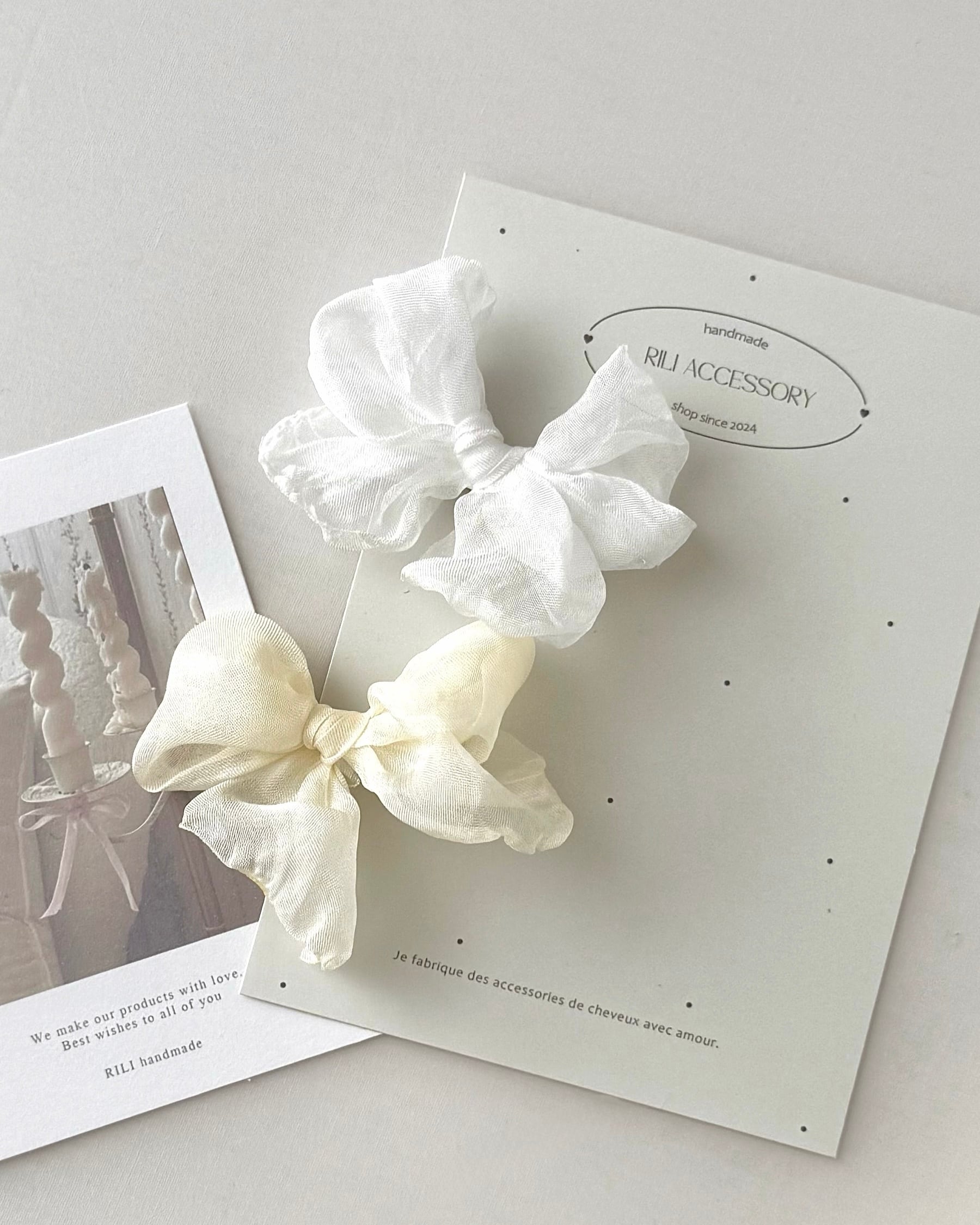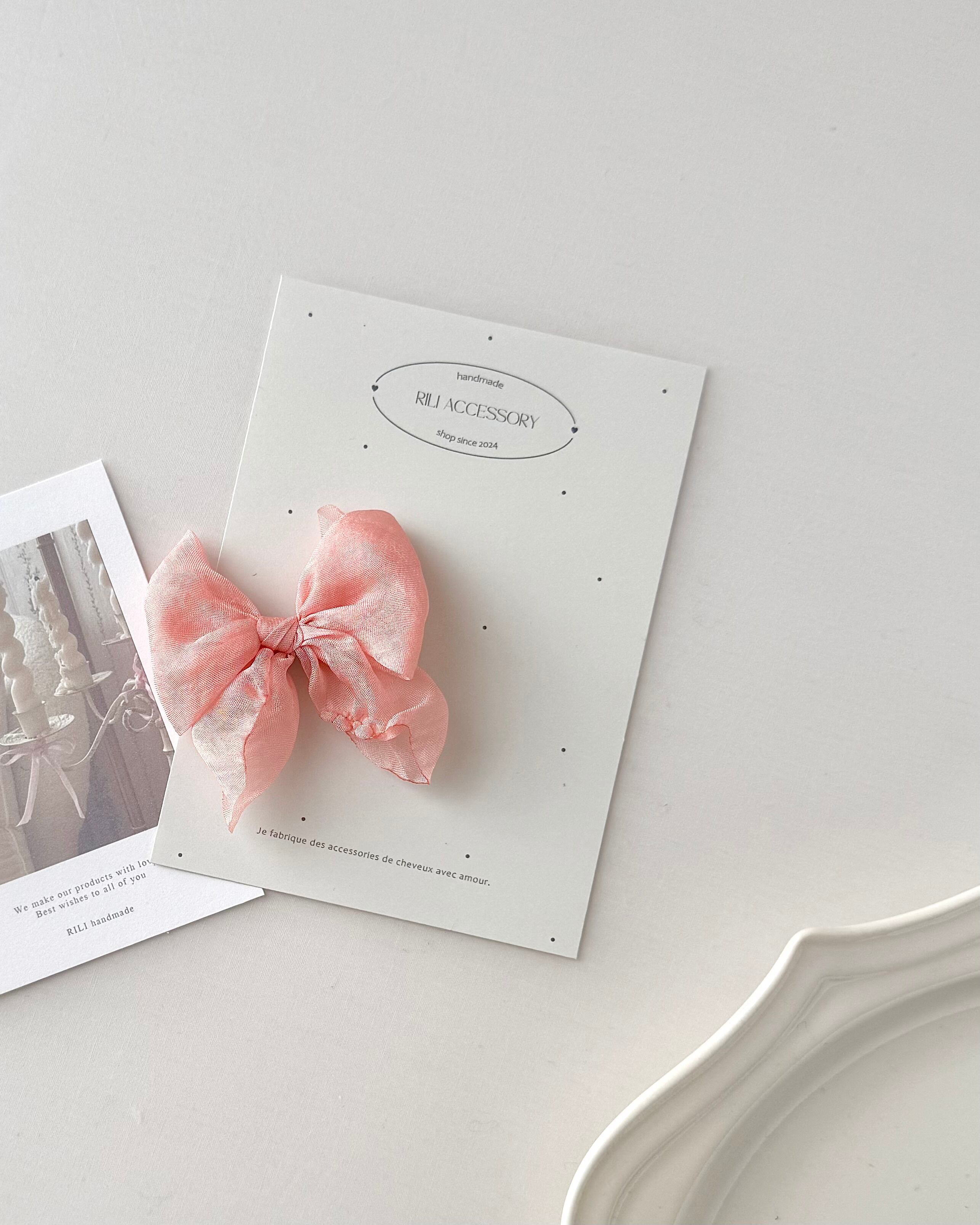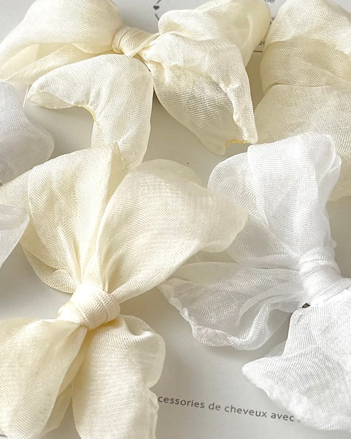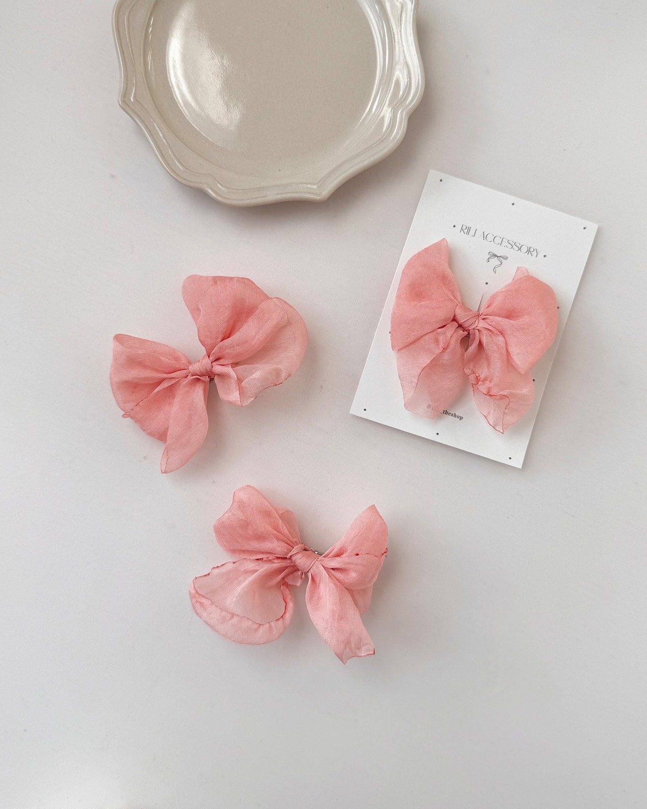 シフォン素材のリボンクリップです。お団子や三つ編みなど、様々なヘアスタイルを華やかにアレンジします。