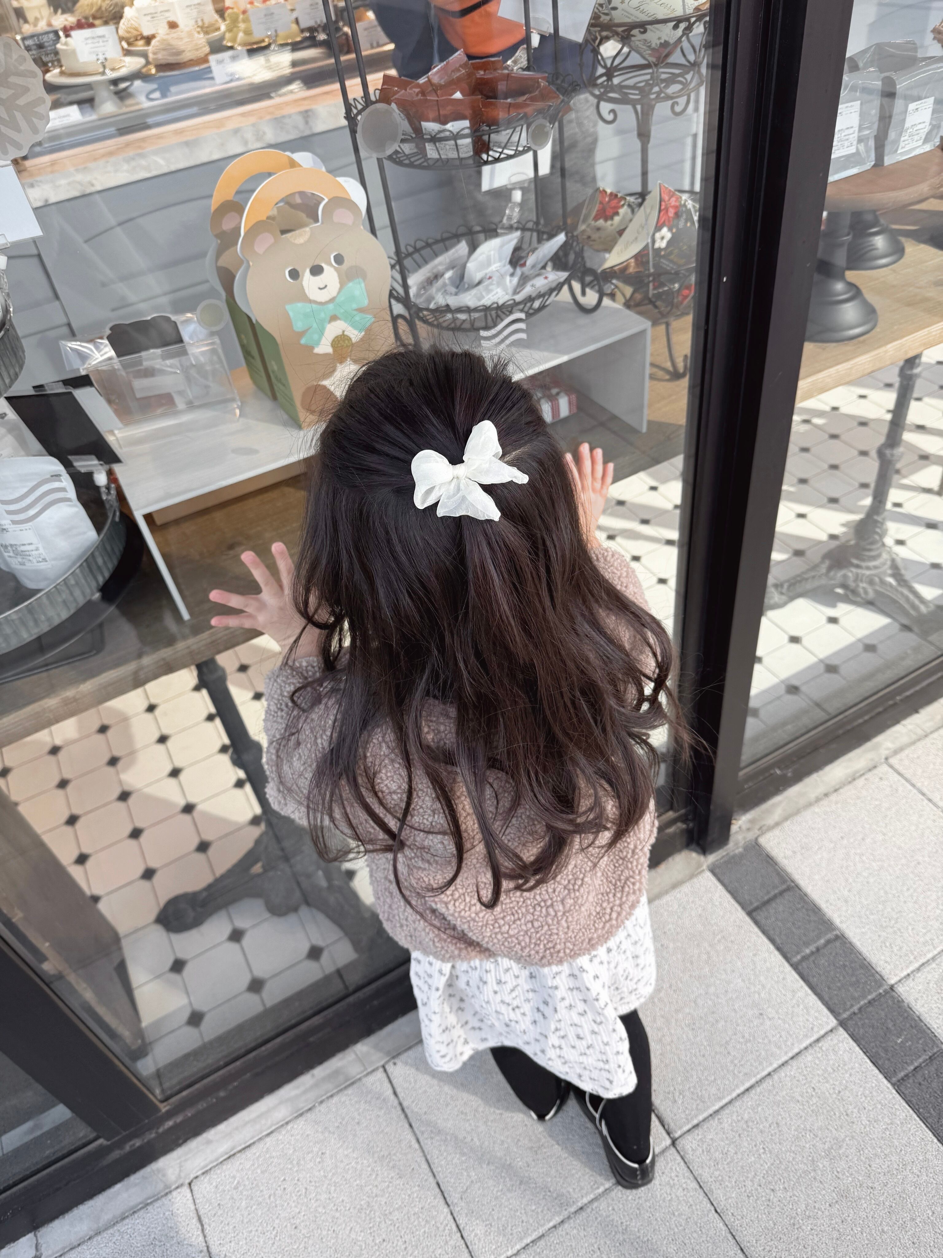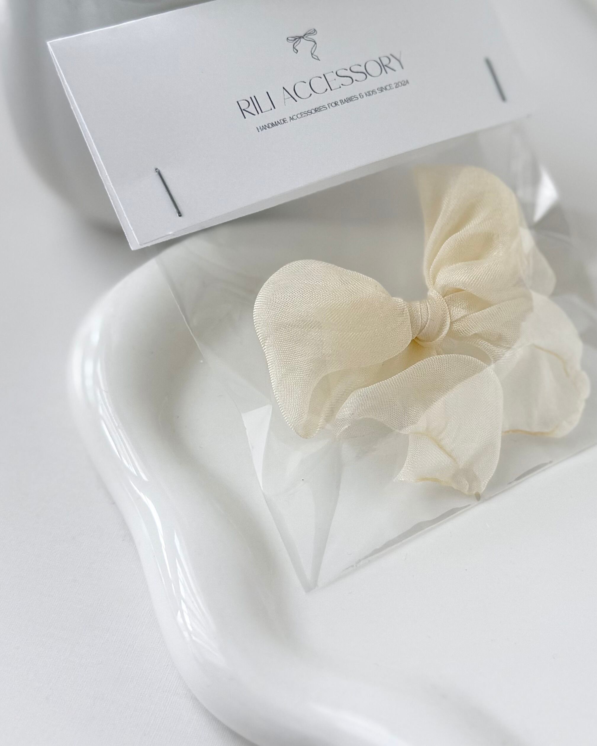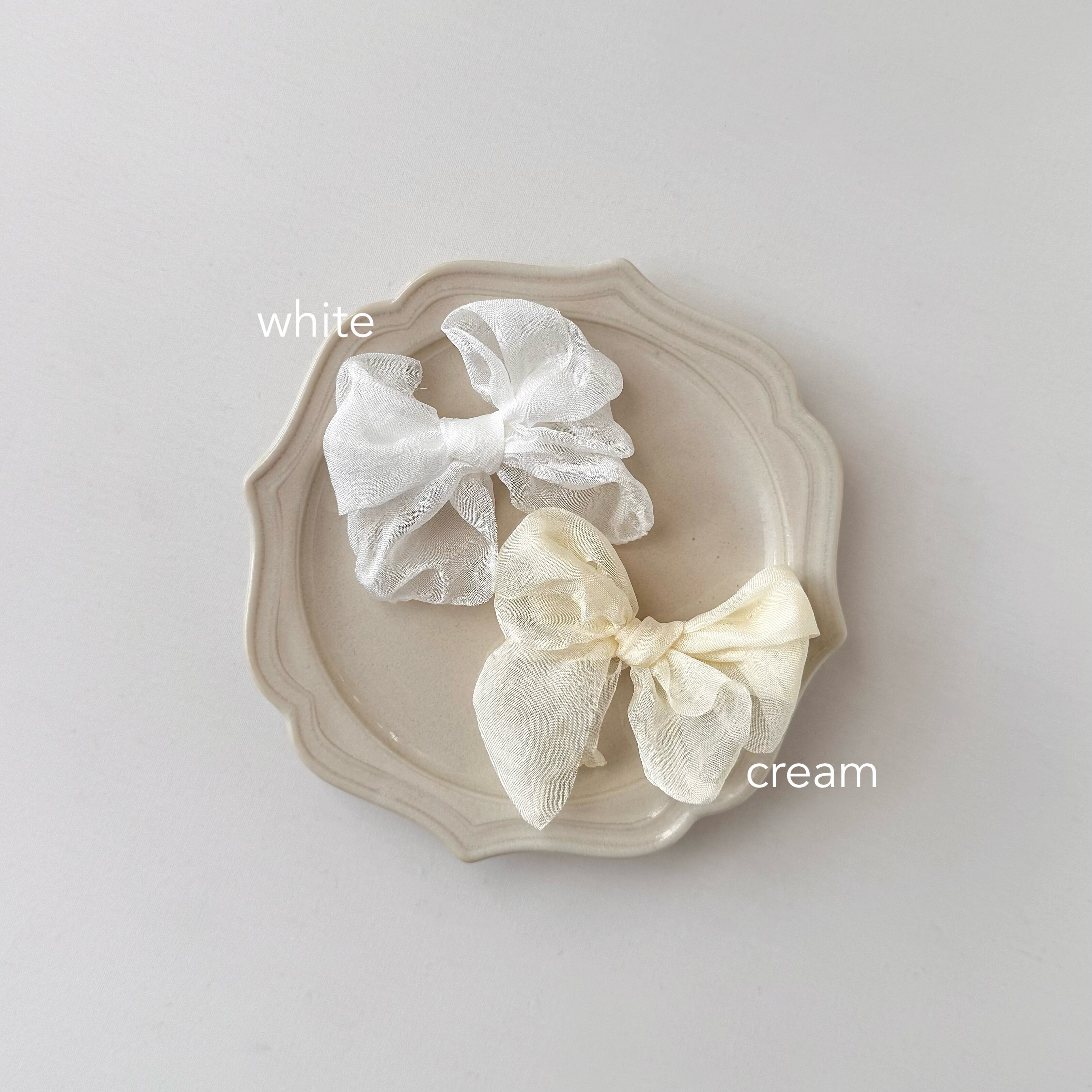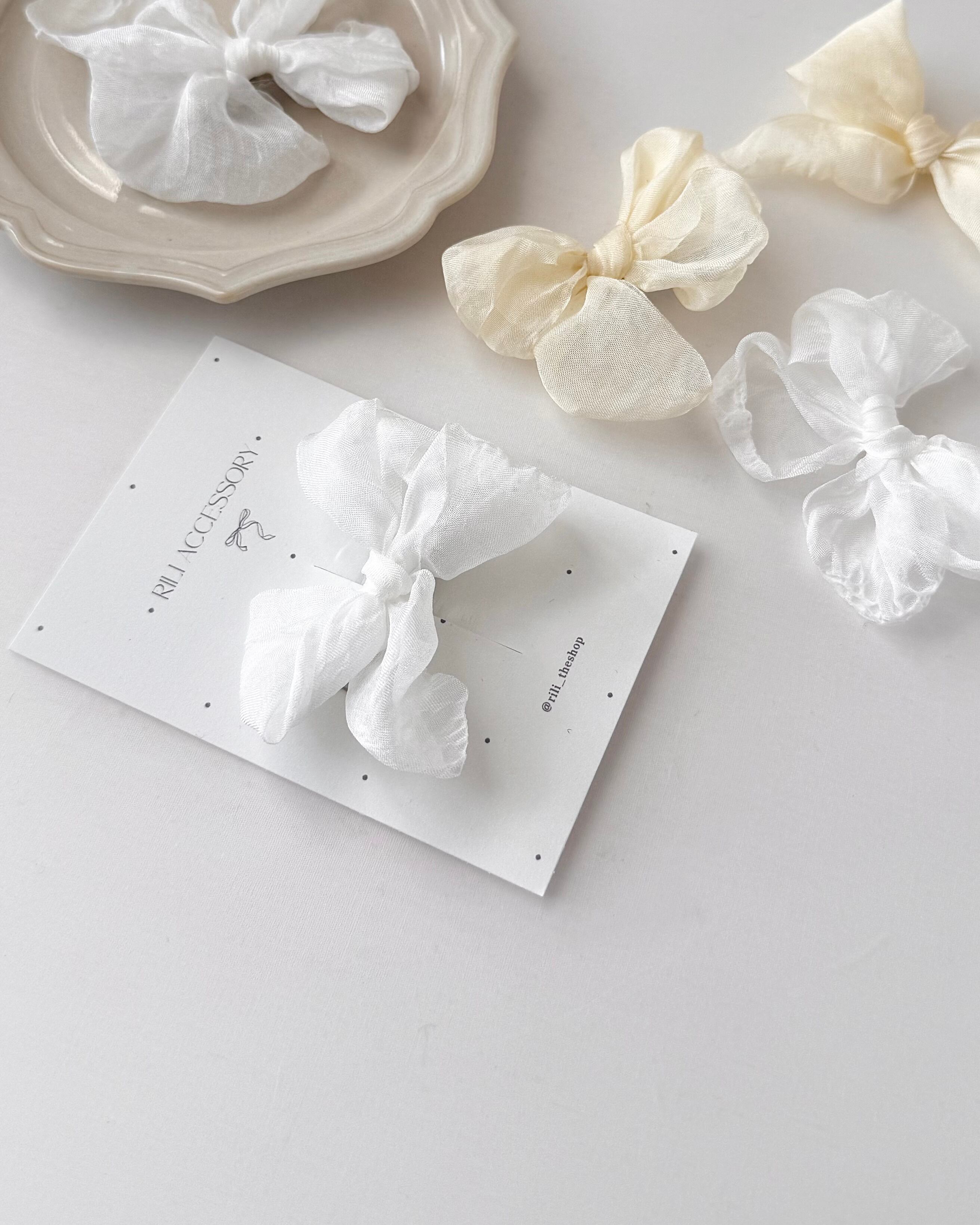 シフォン素材のリボンクリップです。お団子や三つ編みなど、様々なヘアスタイルを華やかにアレンジします。