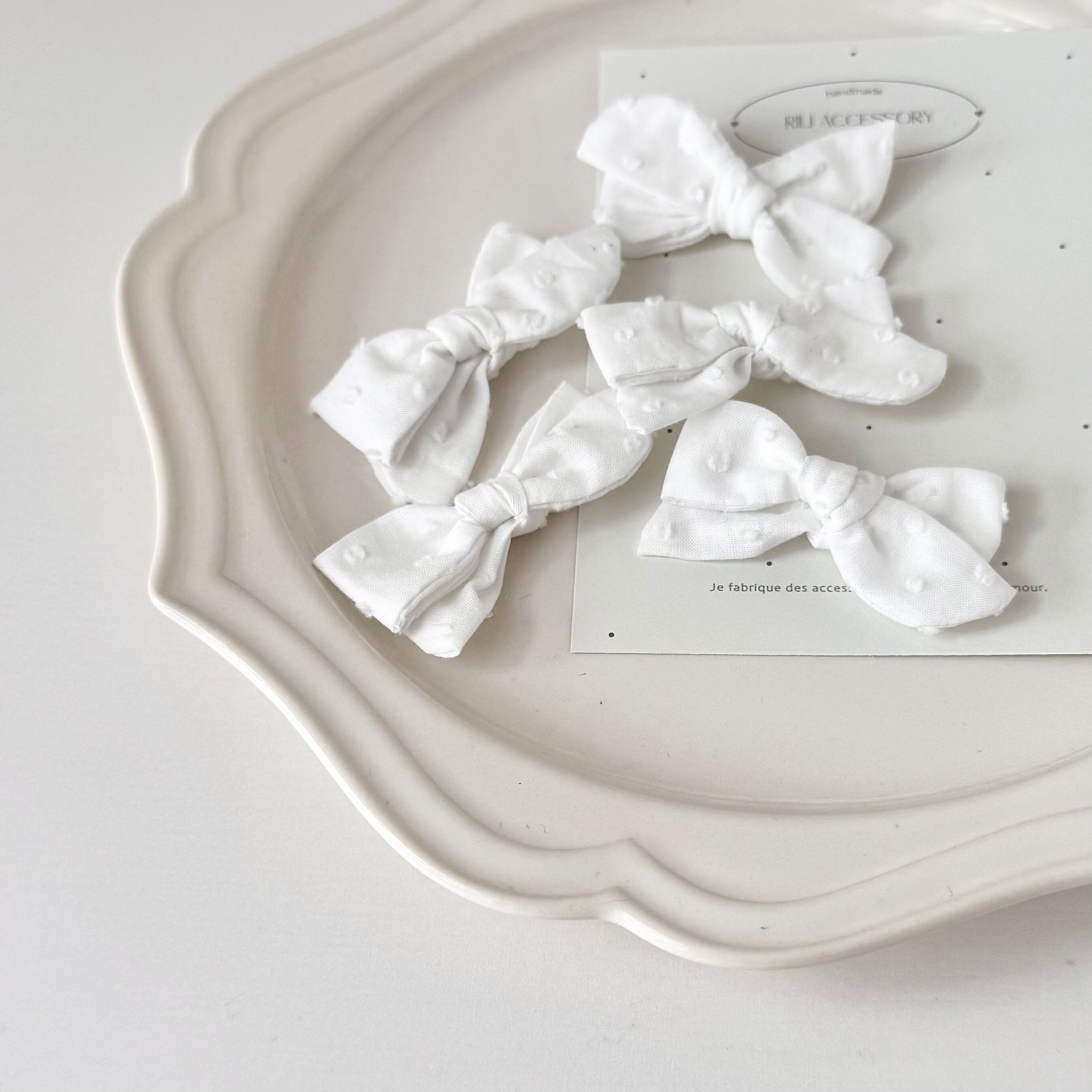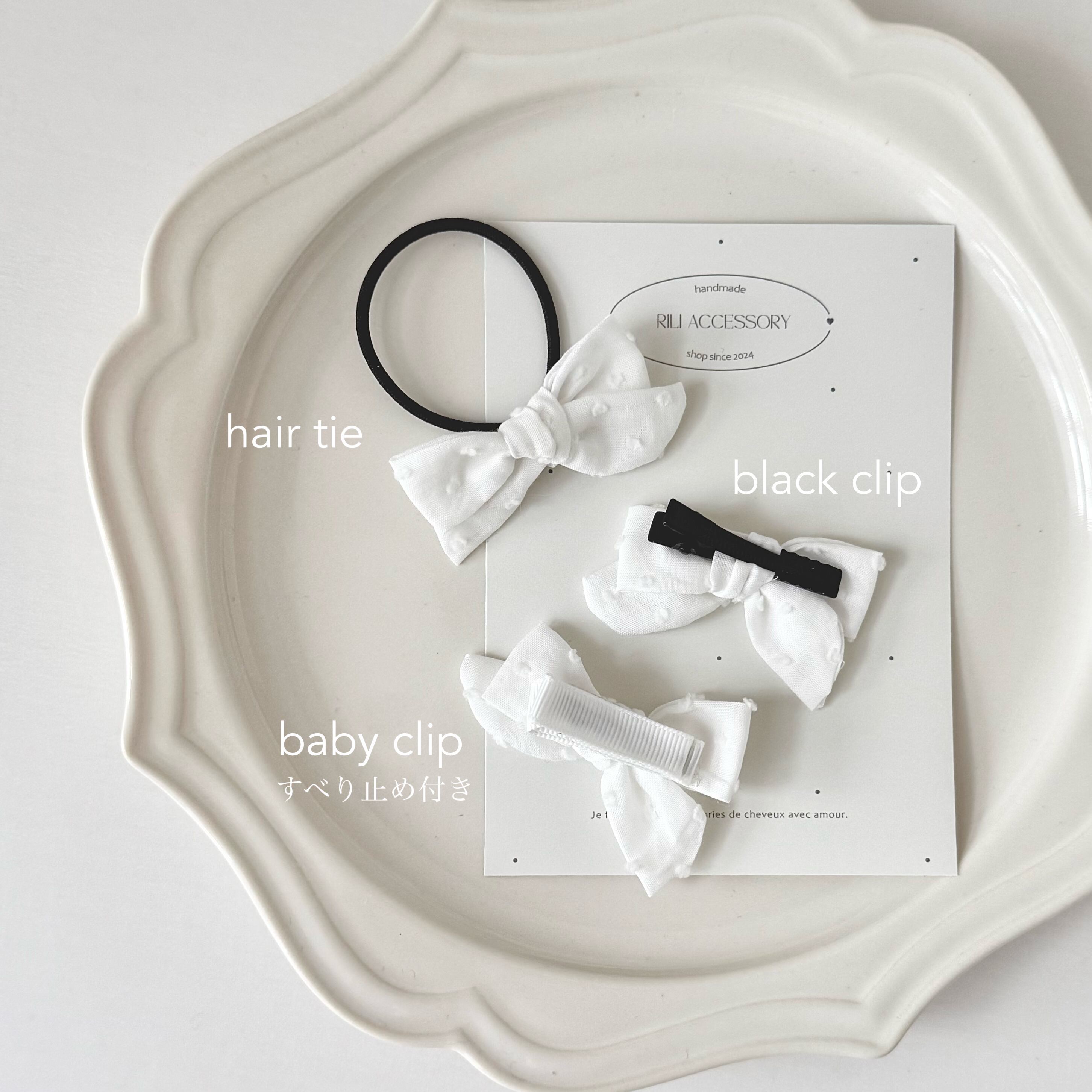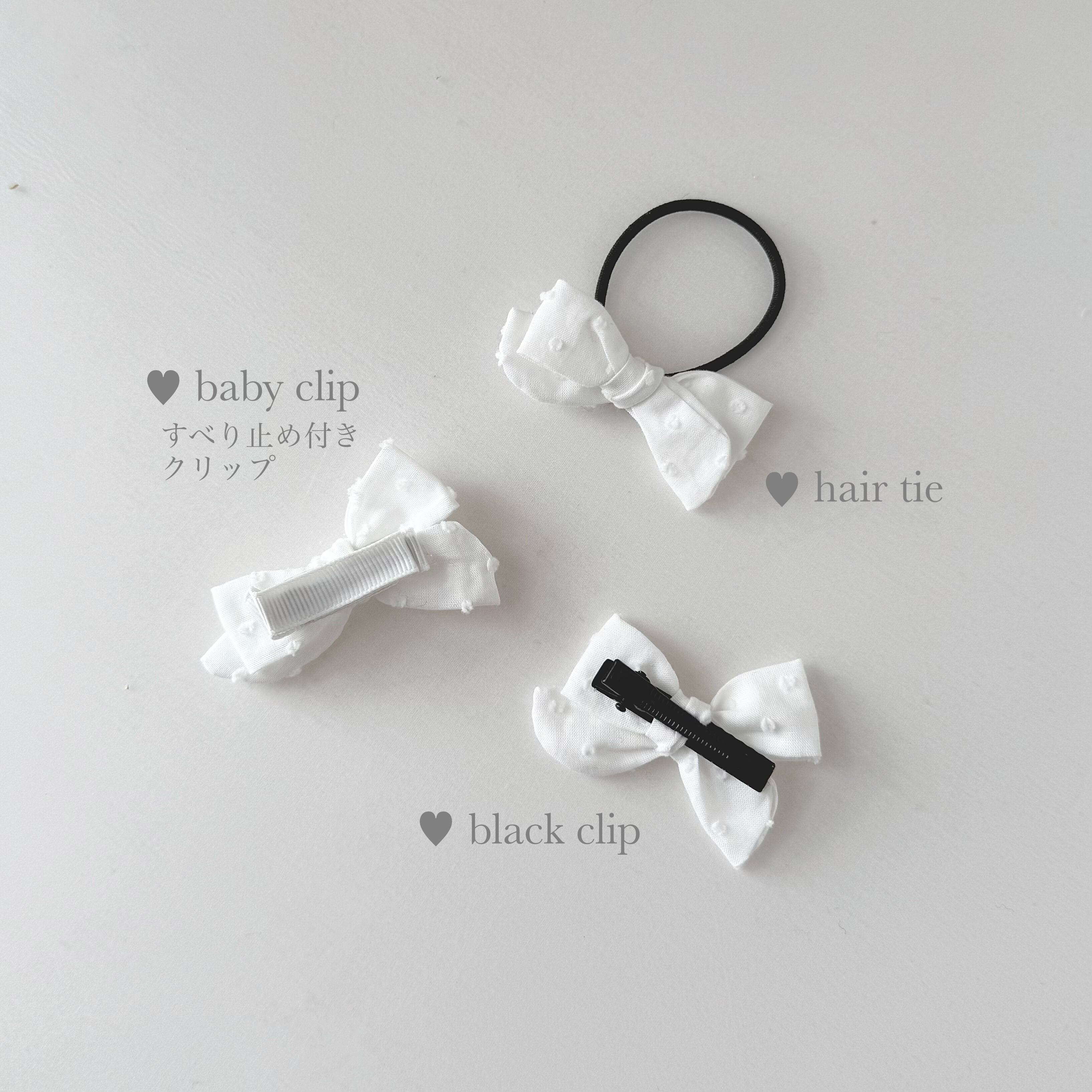 人気のドットミニヨンの生地でできたリボンクリップ/ ヘアゴムです。シンプルなデザインながらも、ドットのエンボスが可愛いデザインです♡
