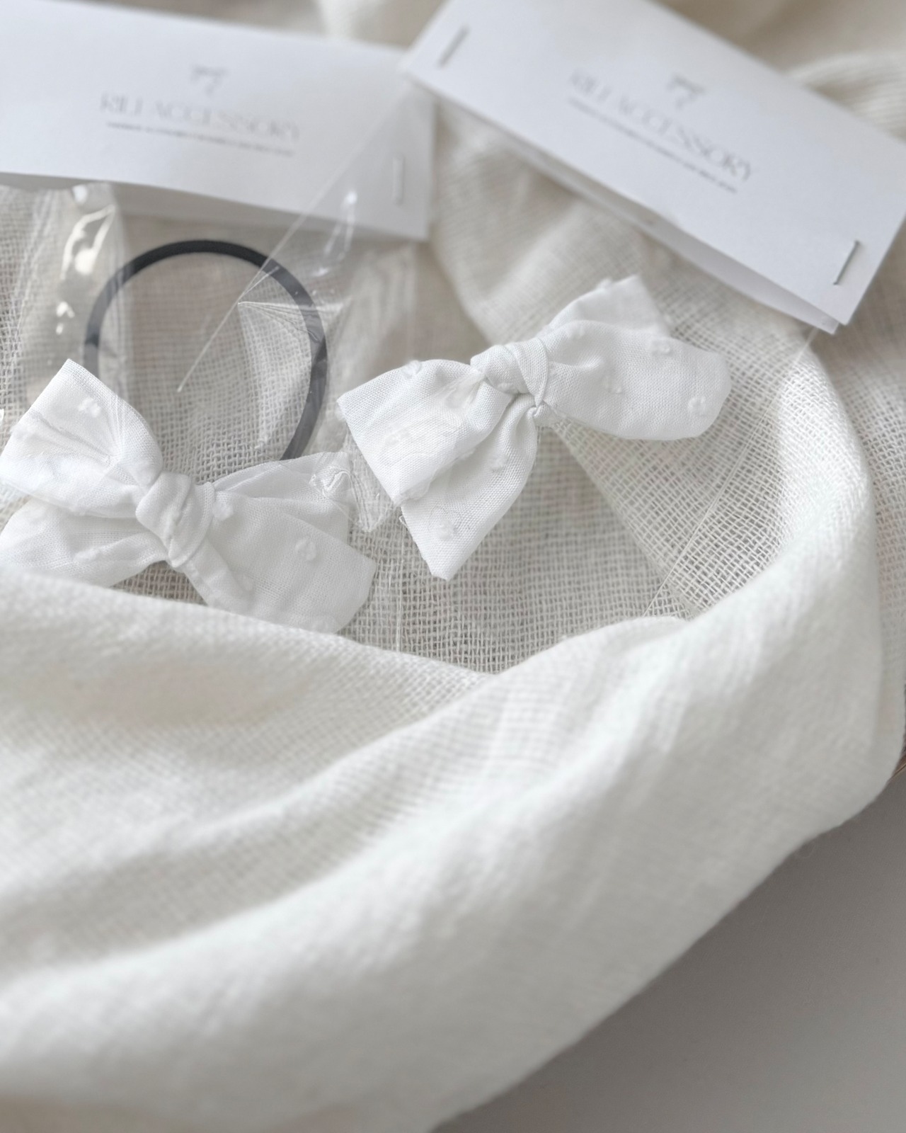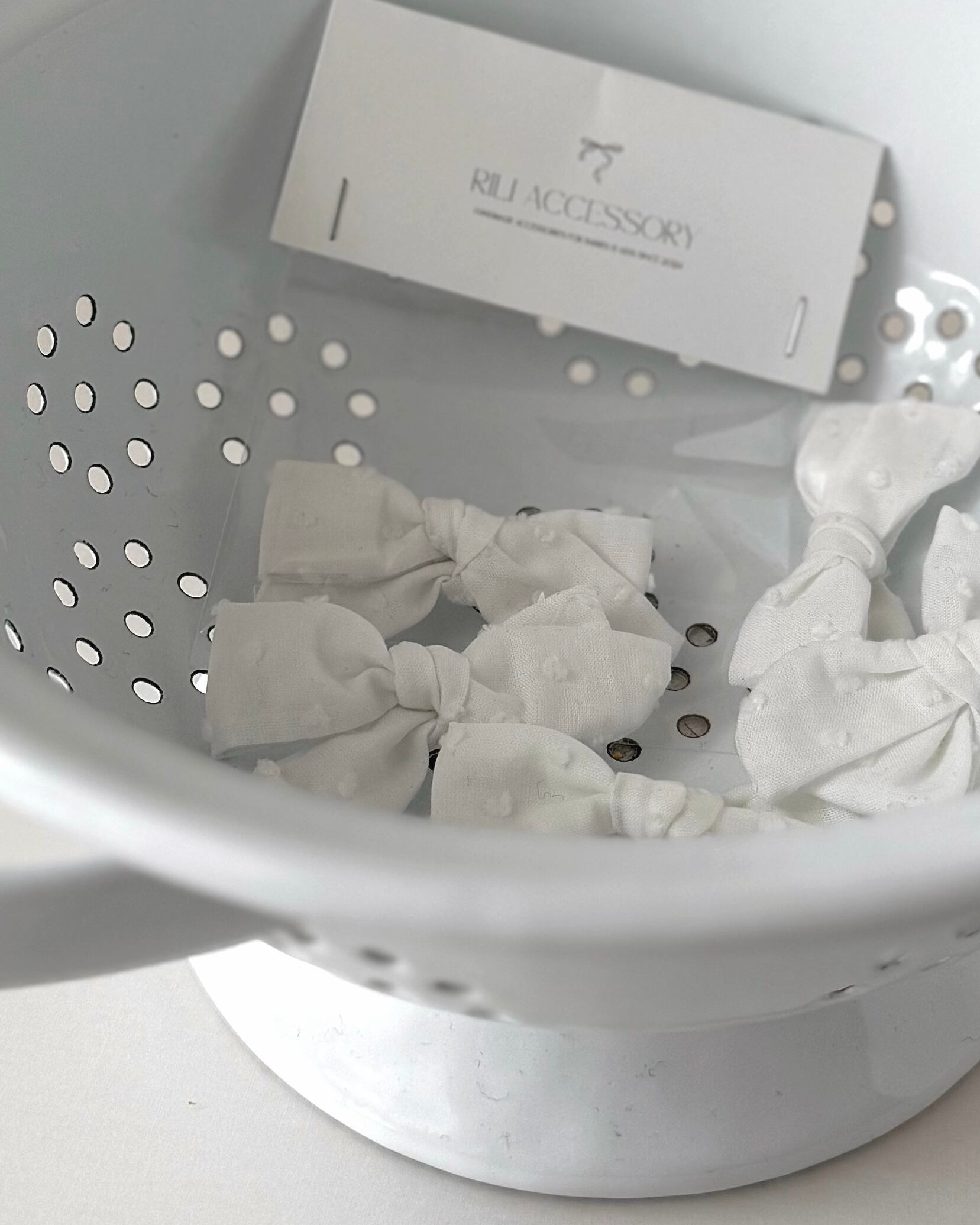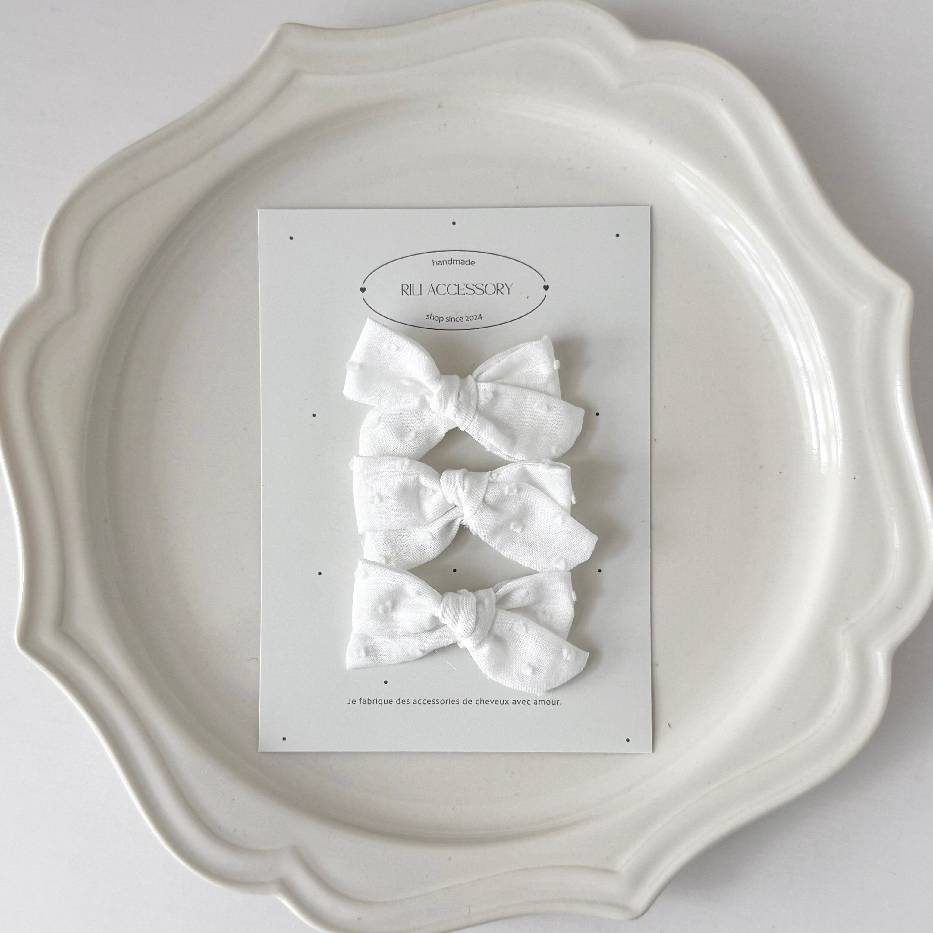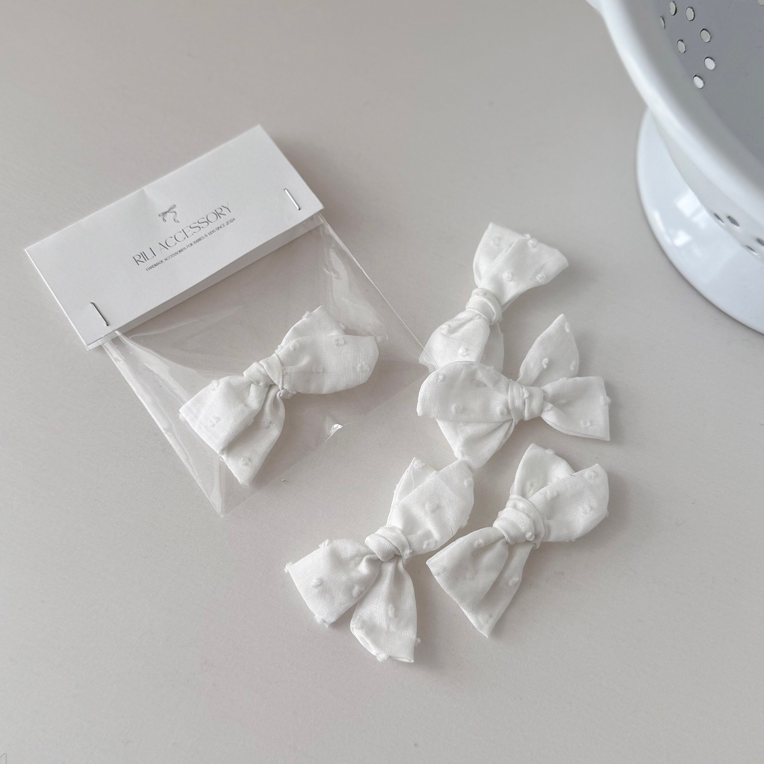 人気のドットミニヨンの生地でできたリボンクリップ/ ヘアゴムです。シンプルなデザインながらも、ドットのエンボスが可愛いデザインです♡