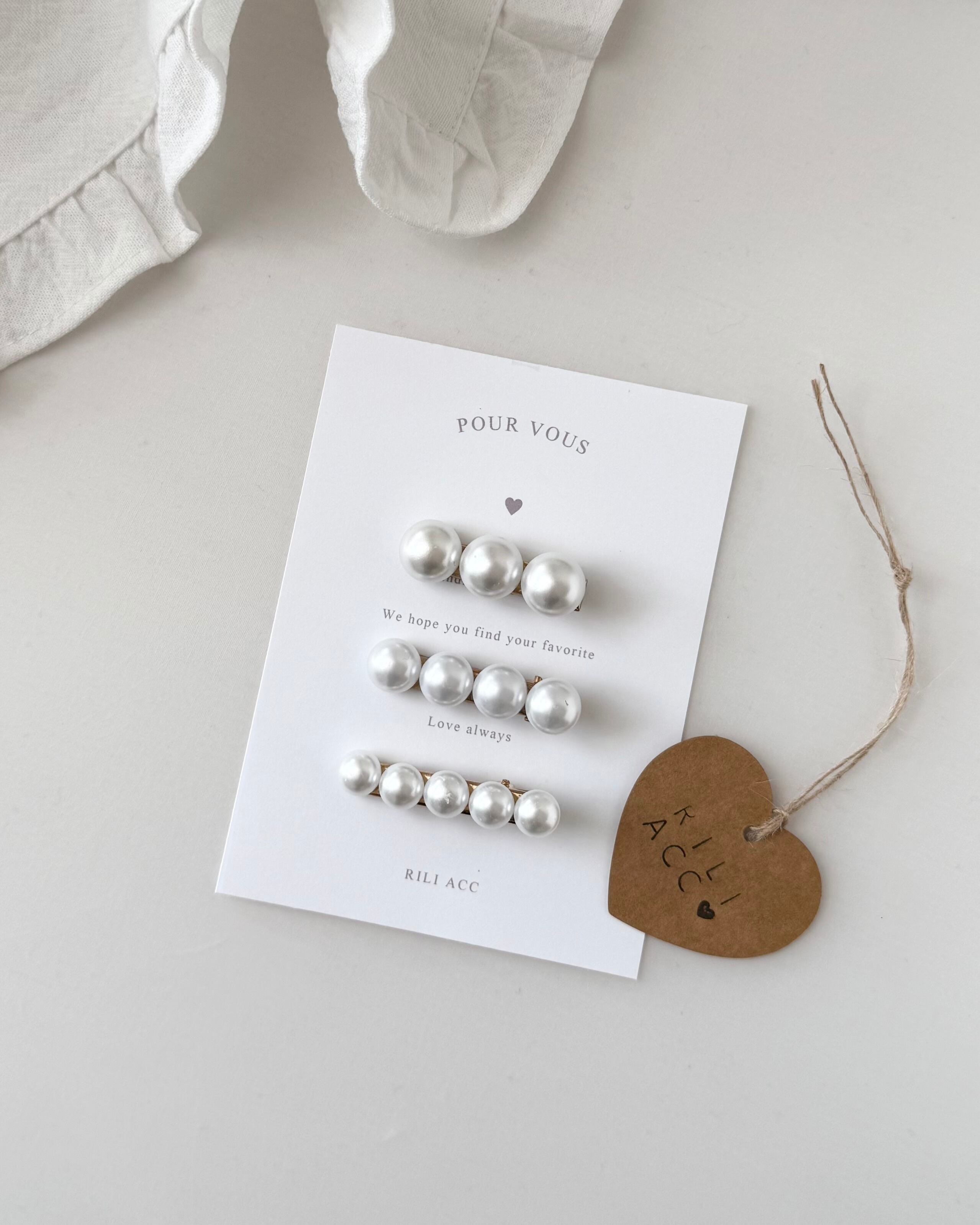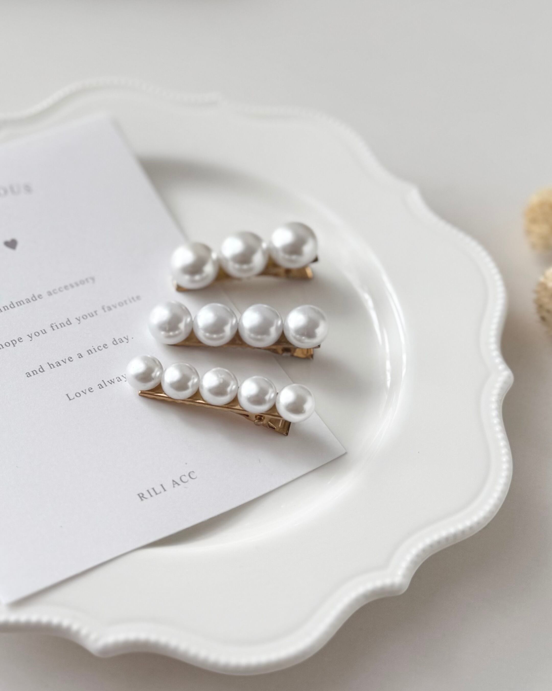 パールのシンプルなヘアクリップ です。他のヘアアクセサリーと一緒にお使いいただいてもかわいいです。