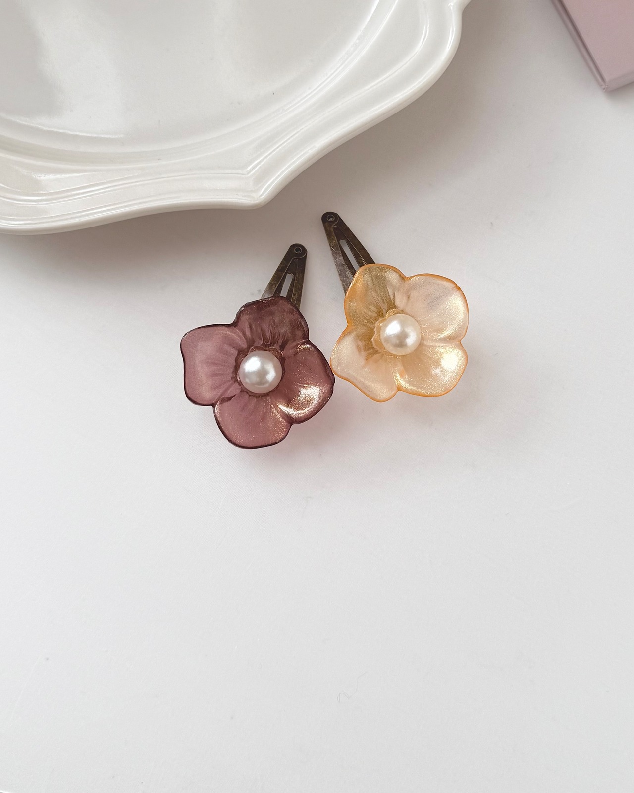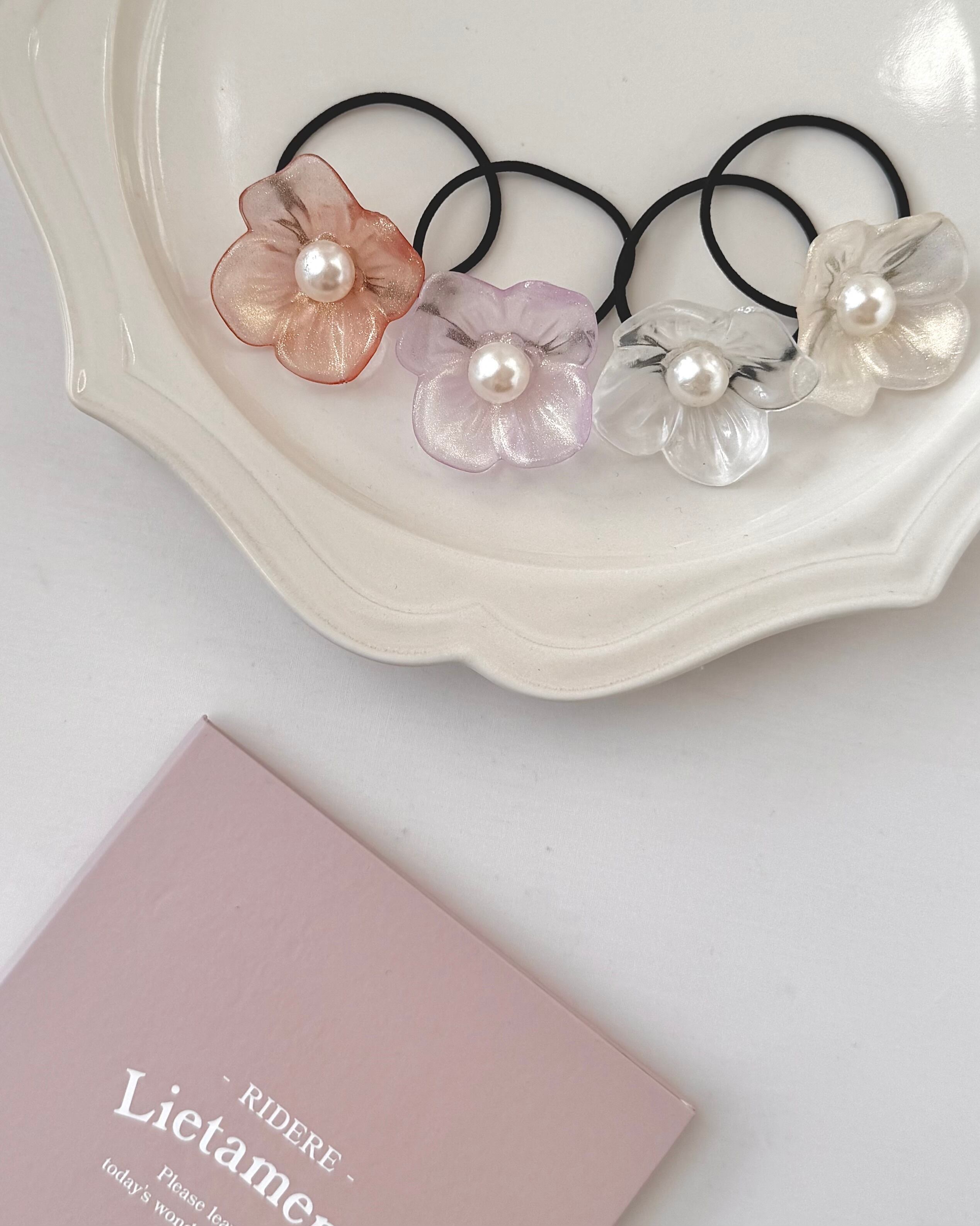 インパクトある大きいお花のヘアゴムです。透明感があるキュートなカラーで、ヘアスタイルのワンポイントに♡