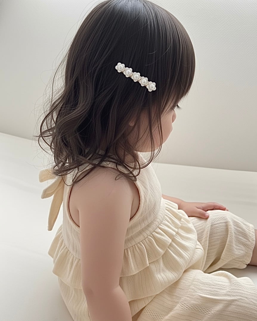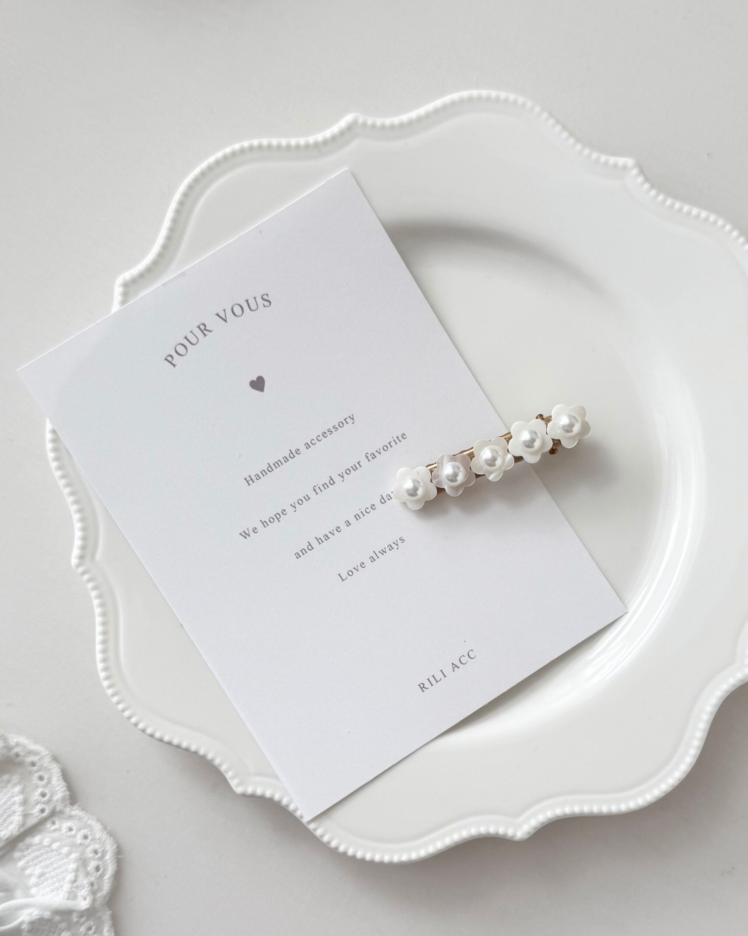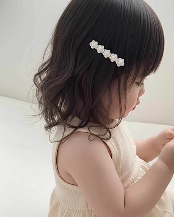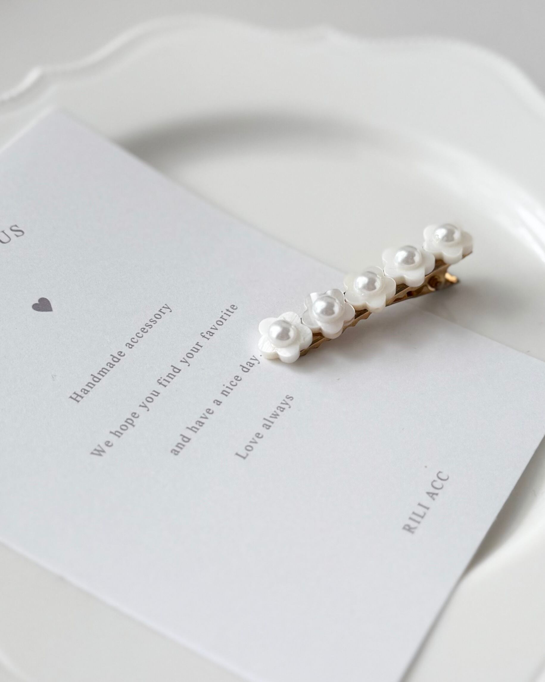 シェル調のヘアクリップです。様々な洋服やヘアアクセサリーと合わせやすいホワイトカラーです。