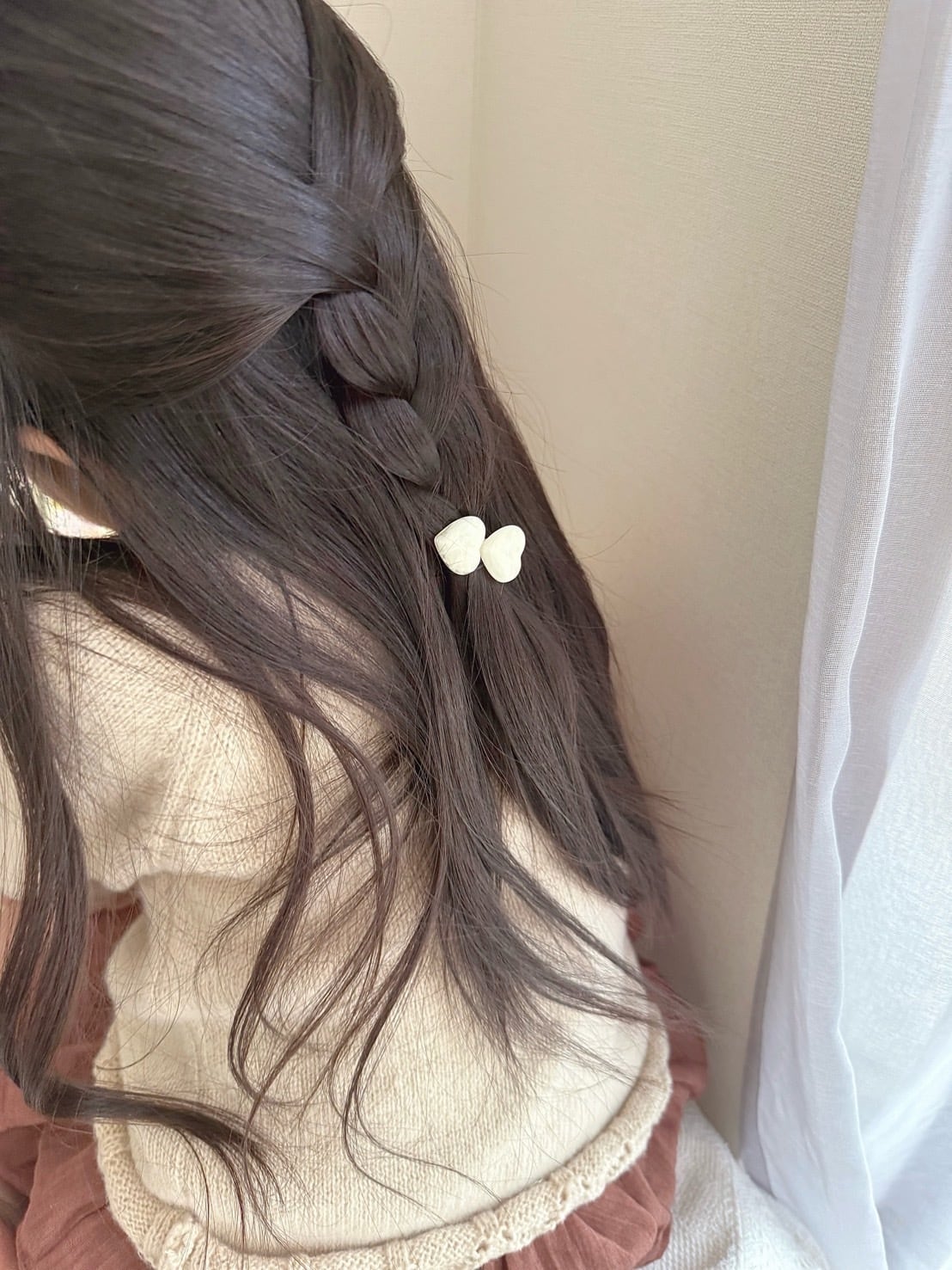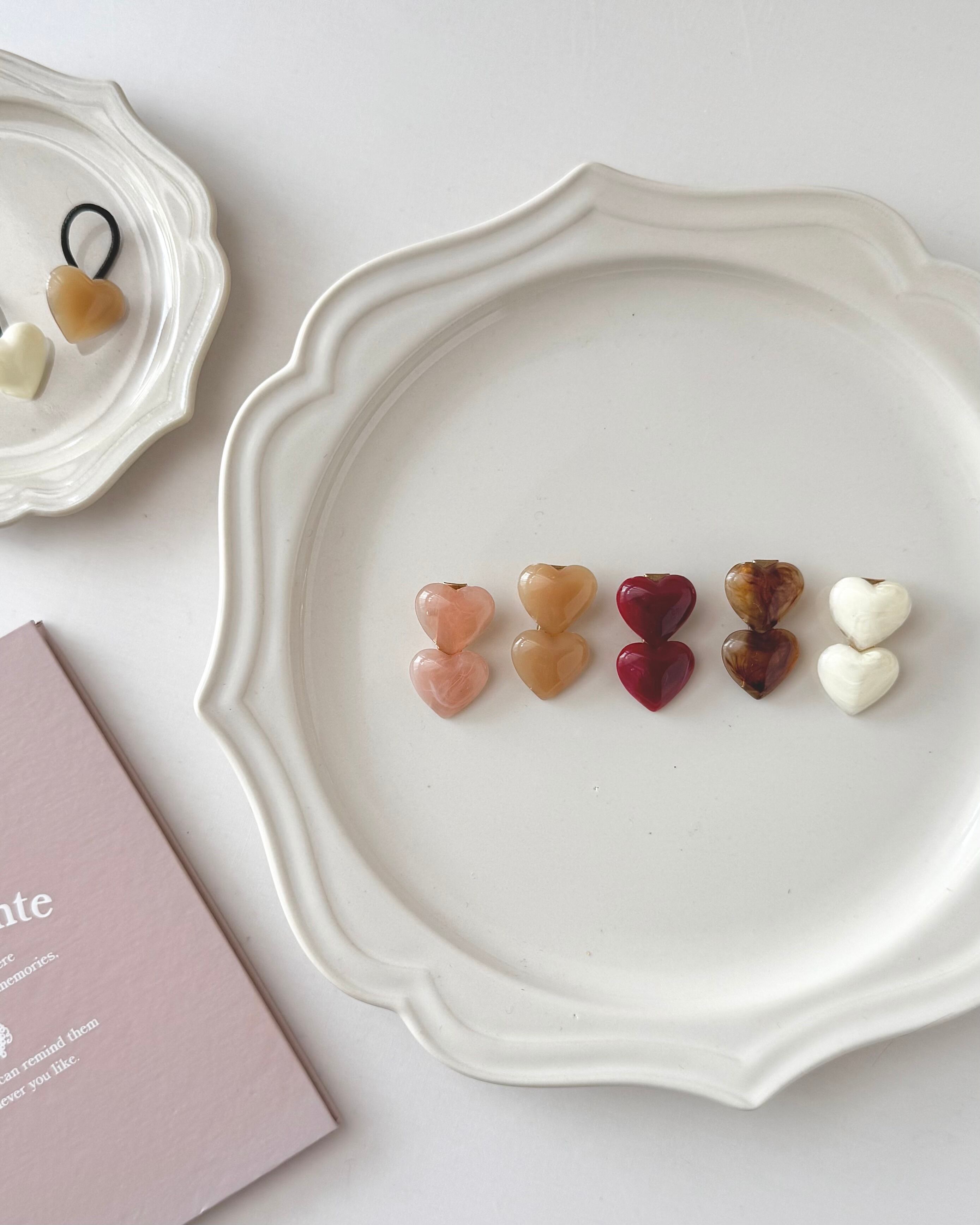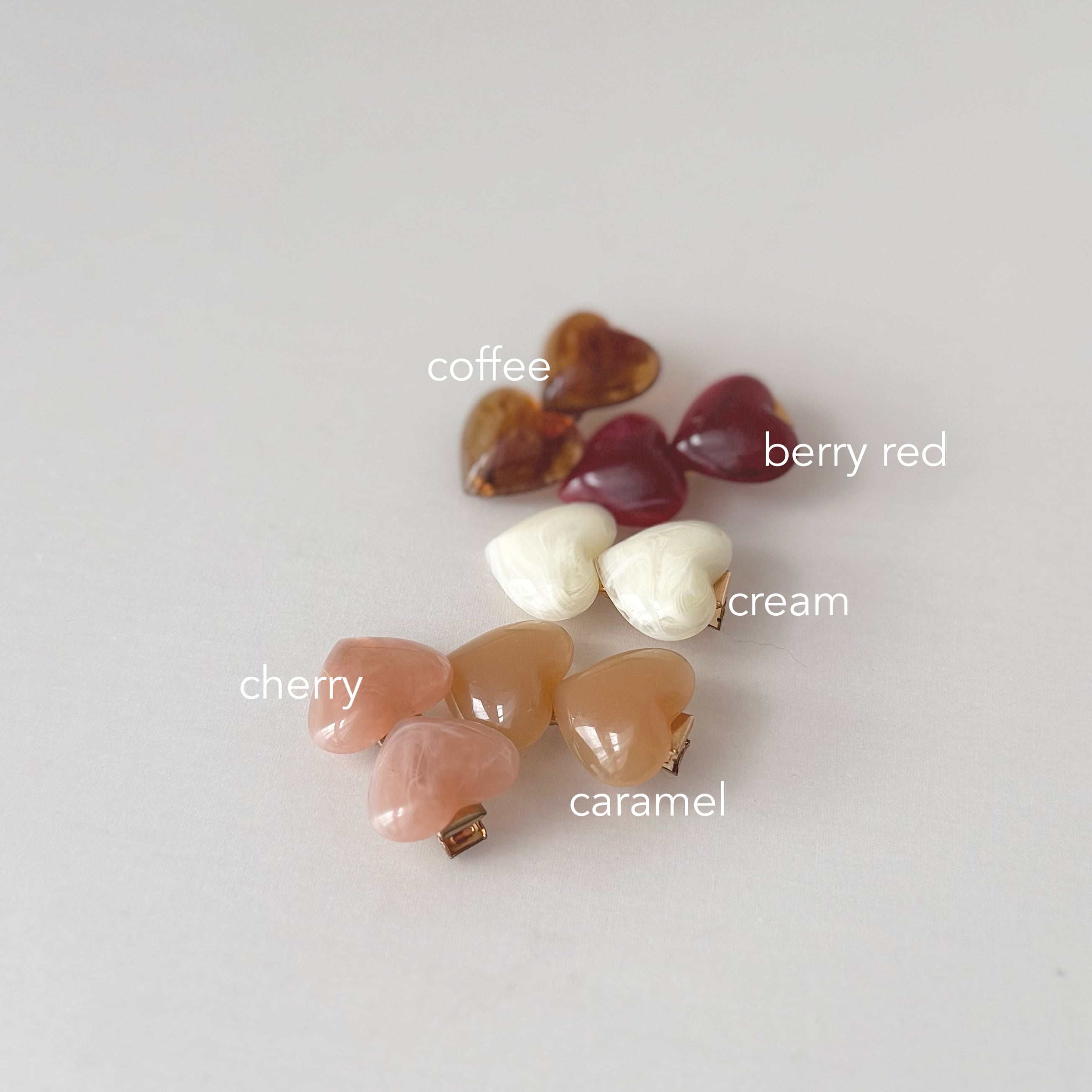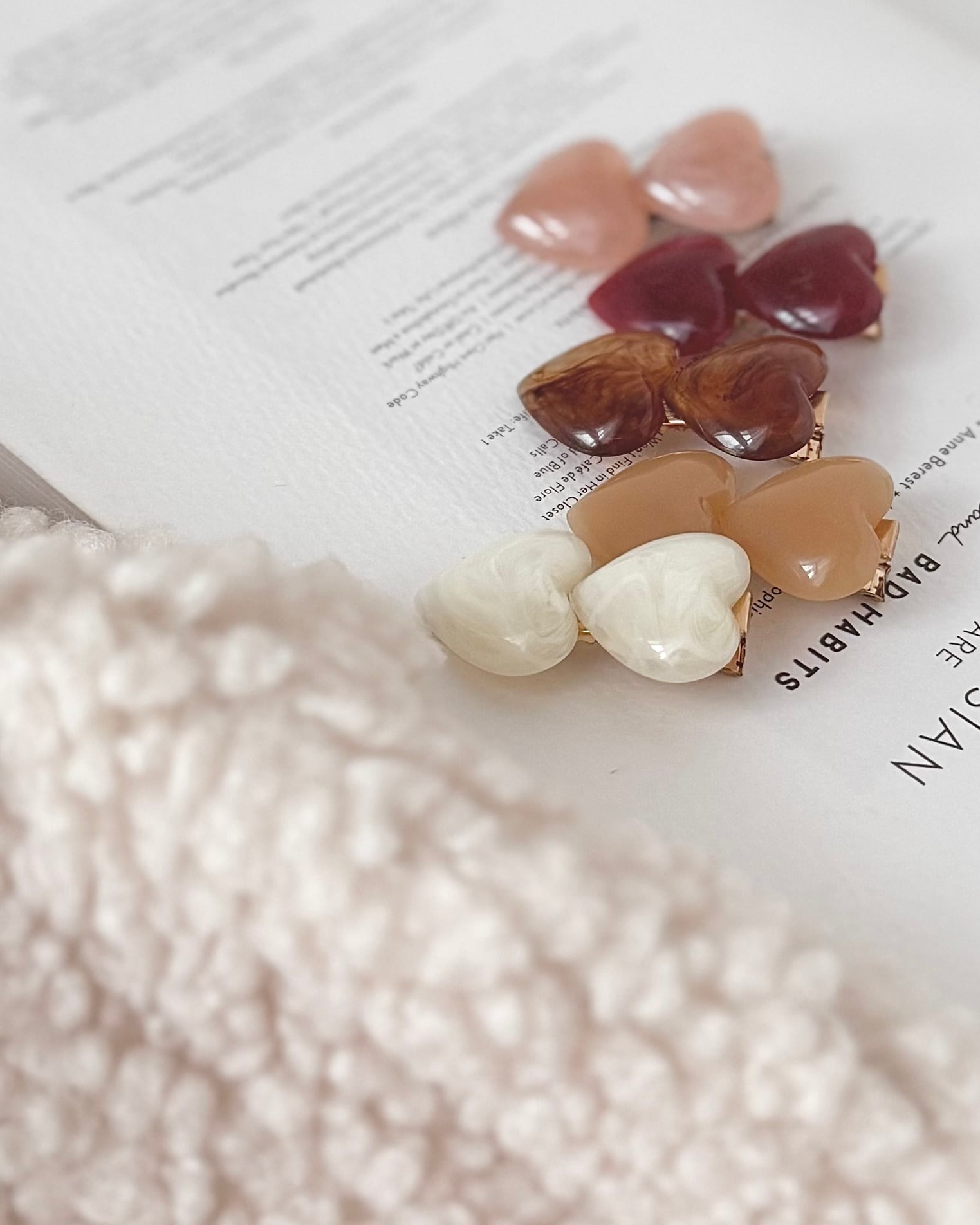 双子のぷっくりハートのヘアクリップ です。透明感があるマーブル柄です。