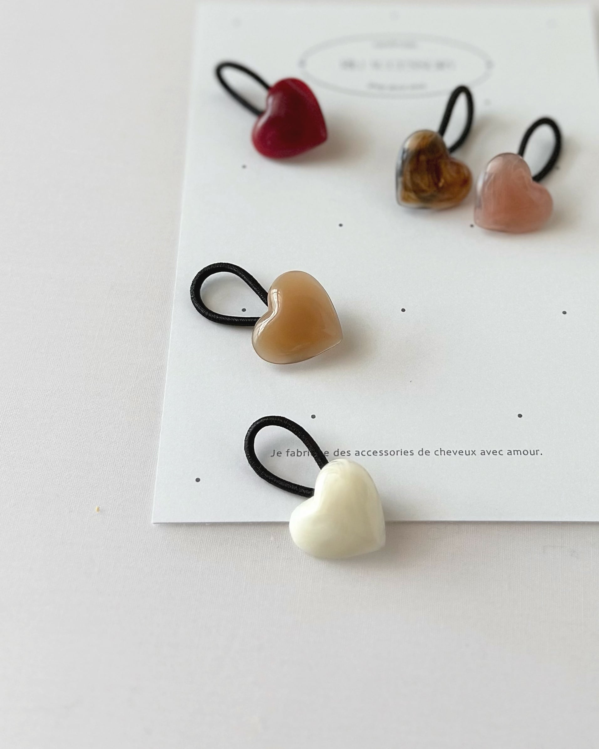 ぷっくりとしたハートのヘアゴムです。