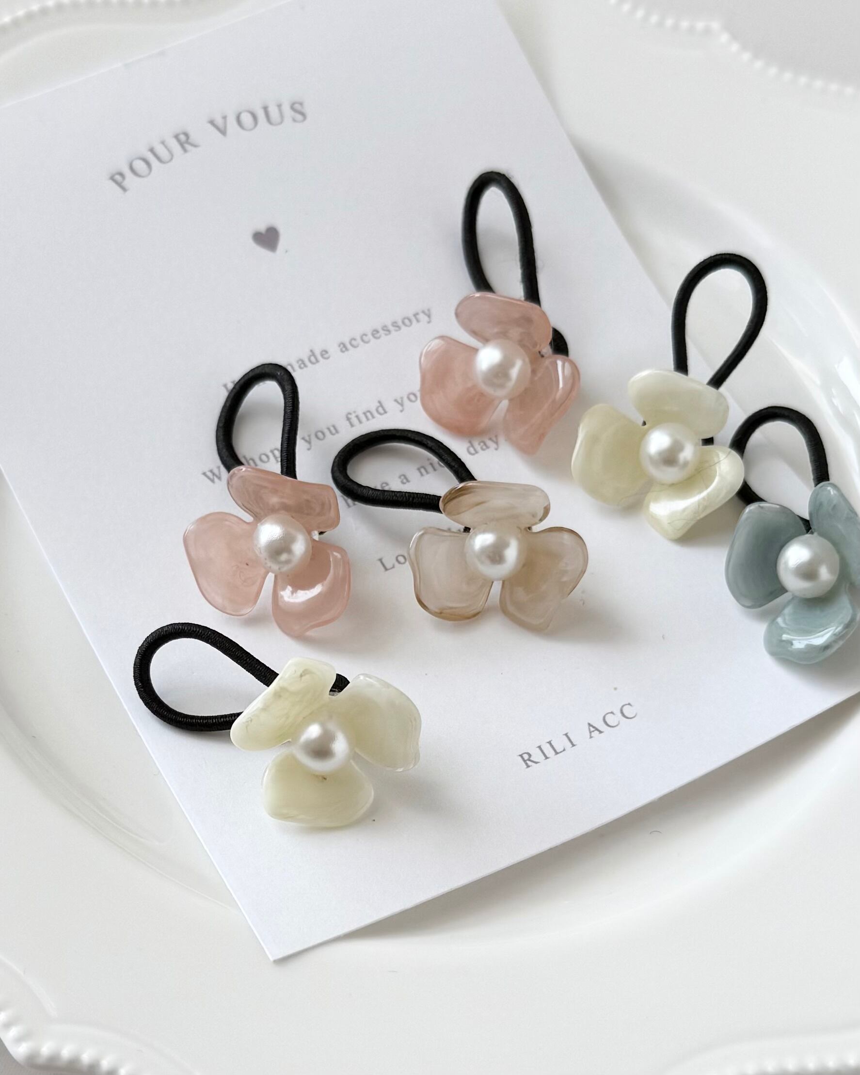 Marble flower hair tie / 2つ