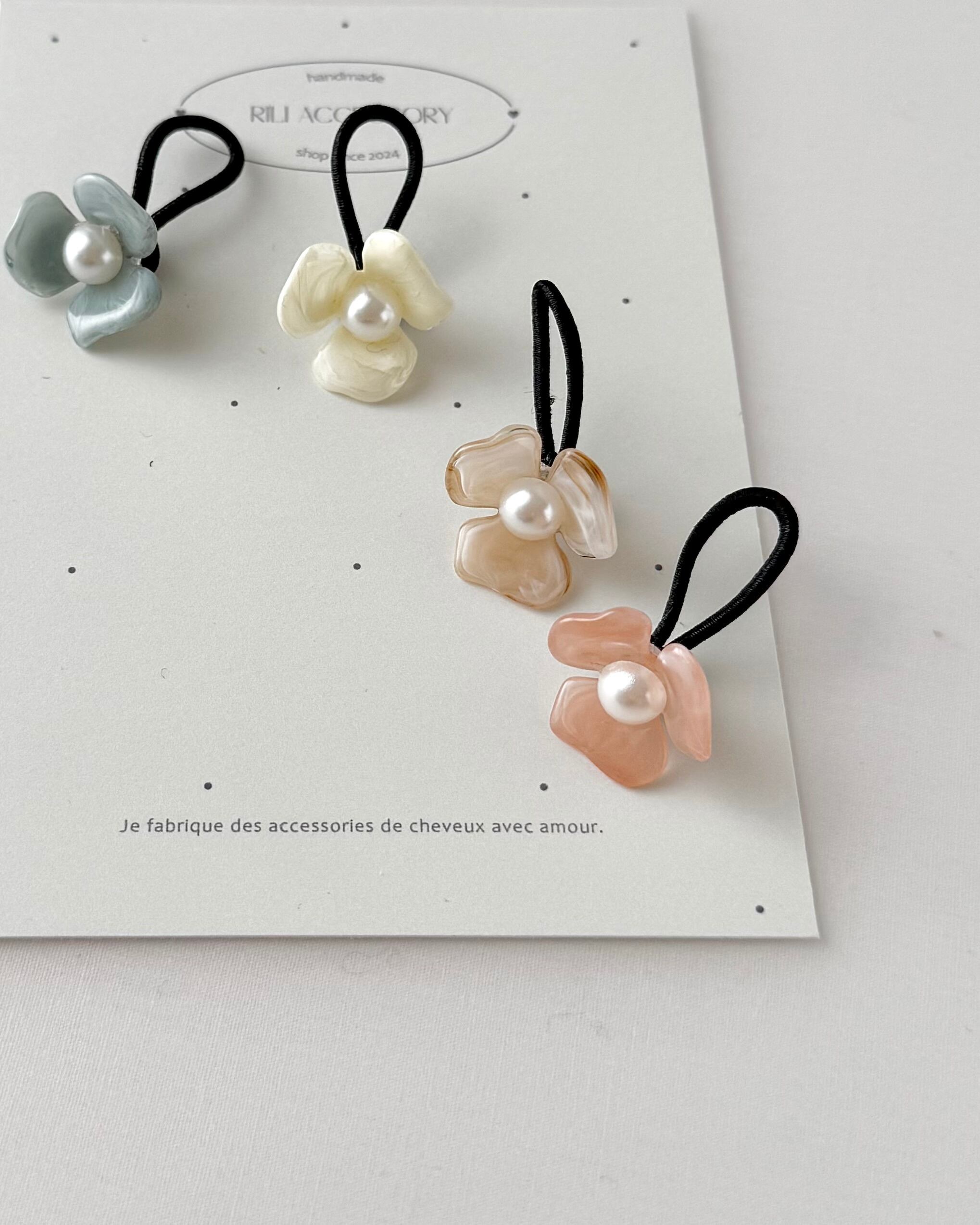 マーブル模様のお花のヘアゴムです。シンプルで使いまわししやすいデザインです。
