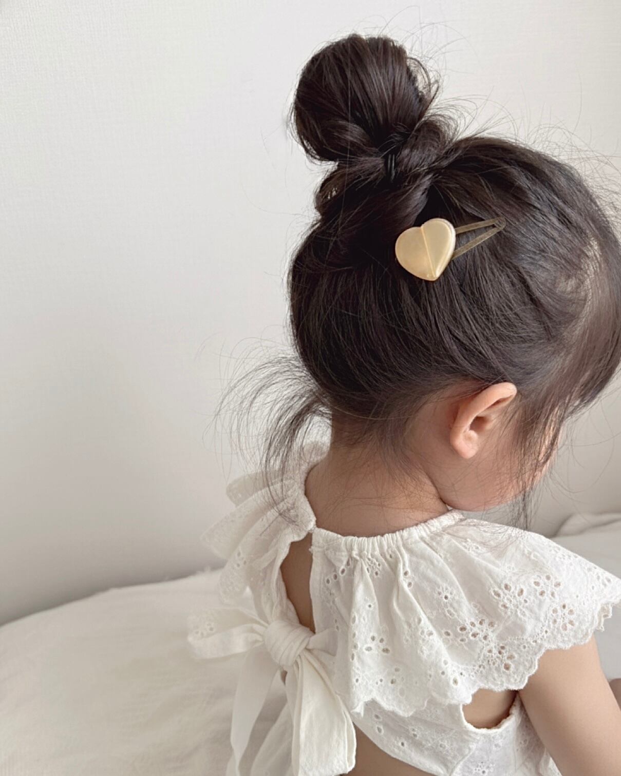 カラフルなパール入りハートのヘアクリップ です。