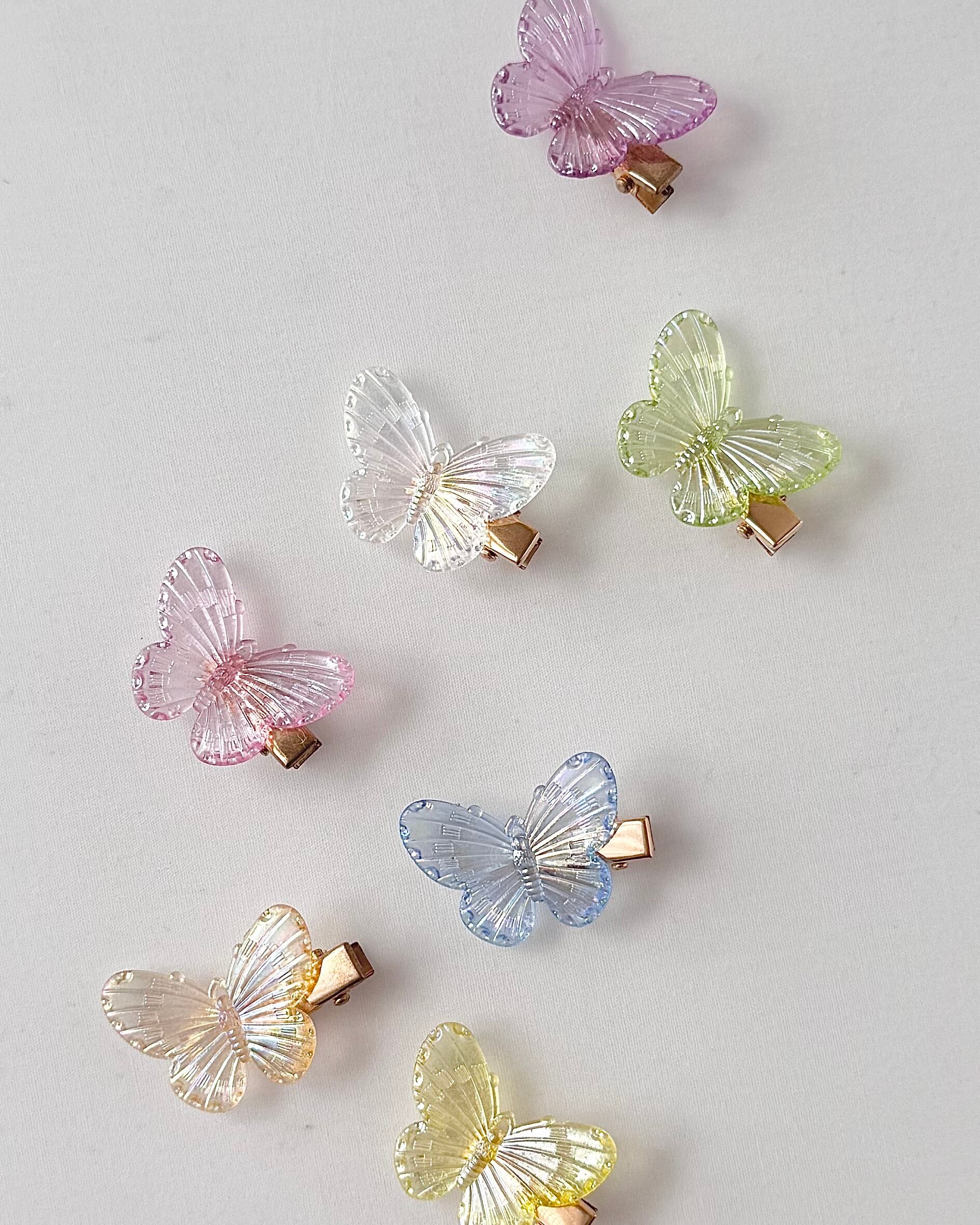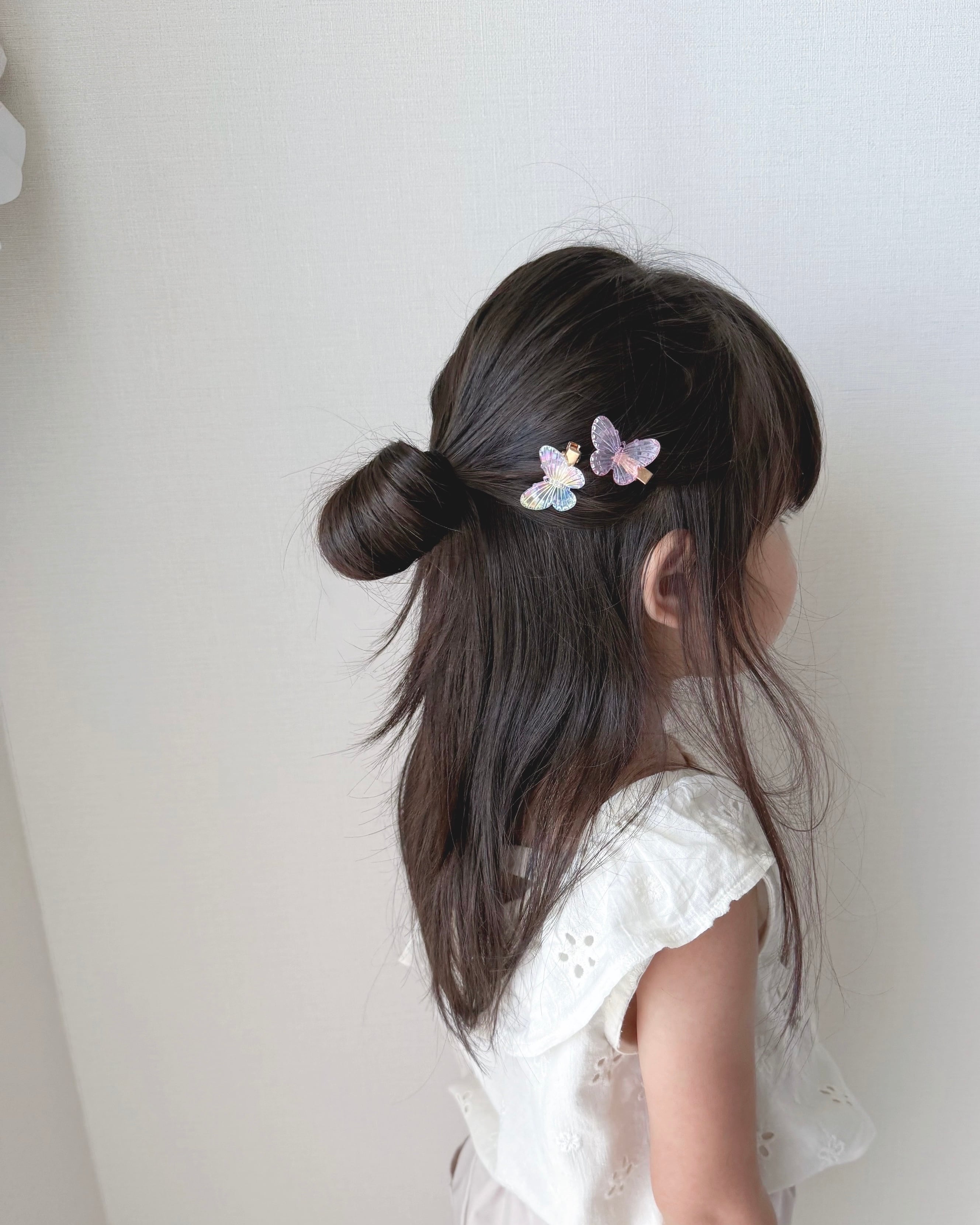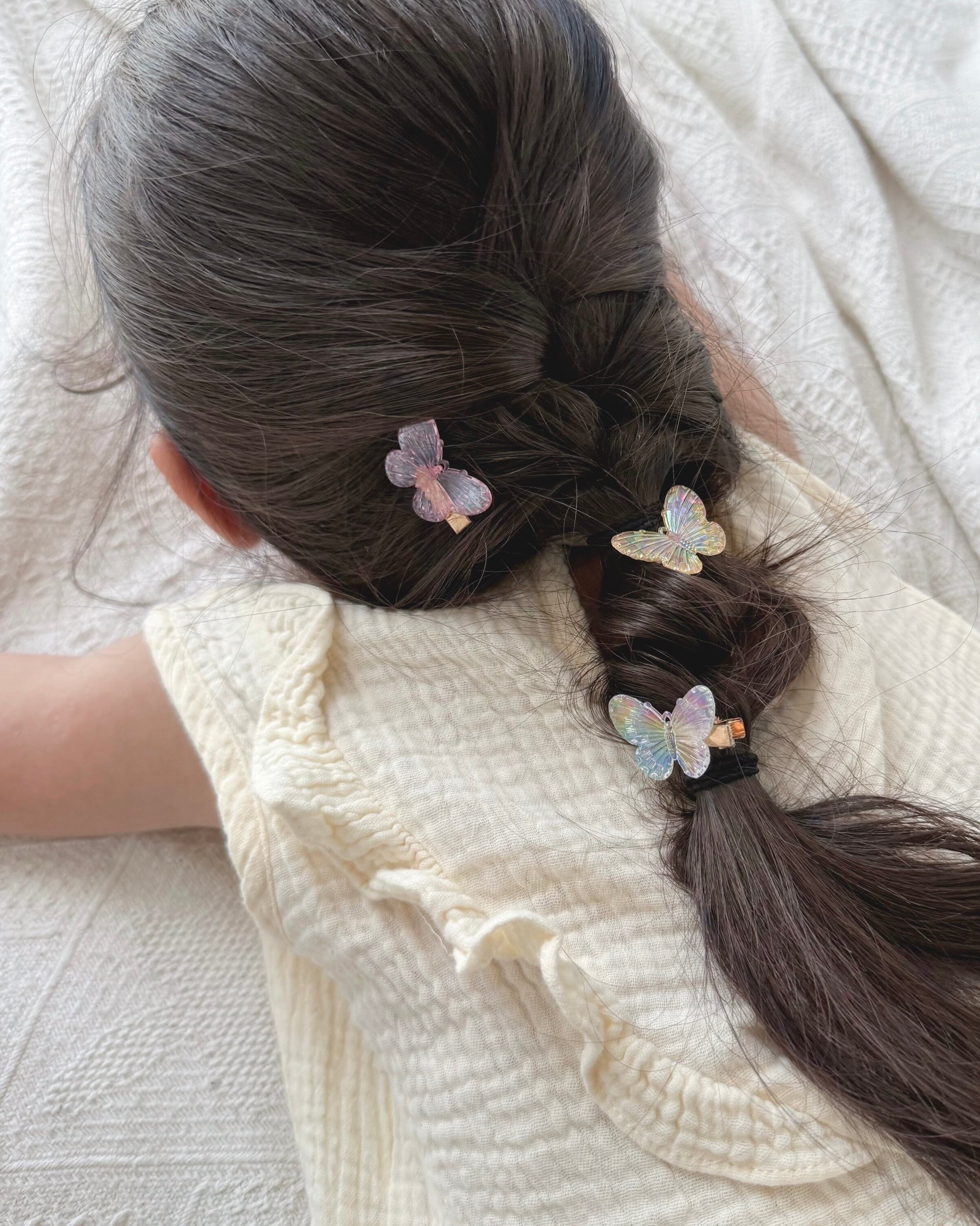 角度によってオーロラに輝くちょうちょのヘアクリップ です。